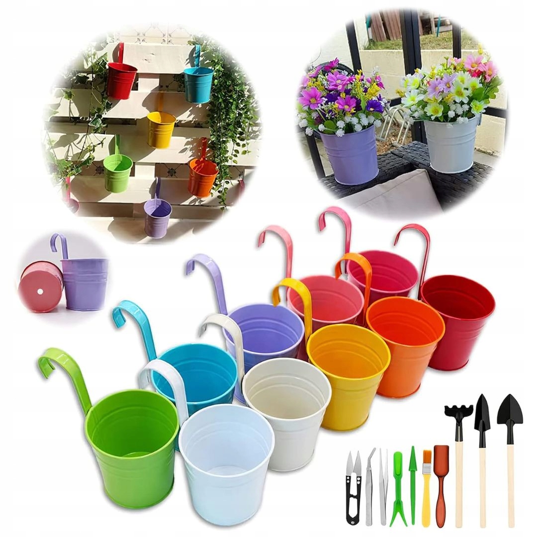 ➡️ Wraz z doniczkami otrzymujesz bezpłatny mini zestaw narzędzi, który ułatwi Ci pielęgnację Twoich roślin. Dzięki haczykom na ścianie, oknie, poręczy czy płocie, możesz stworzyć niepowtarzalny klimat w swoim ogrodzie lub na balkonie, zapełniając przestrzeń barwnymi kwiatami i ziołami.