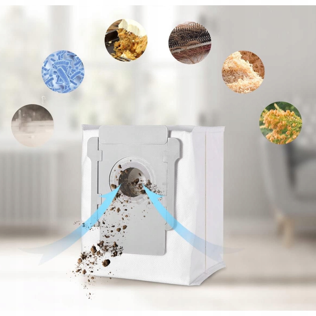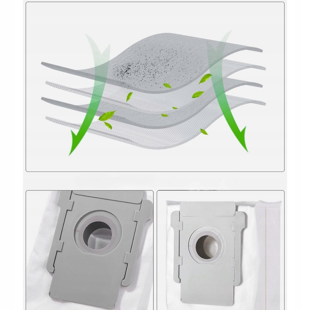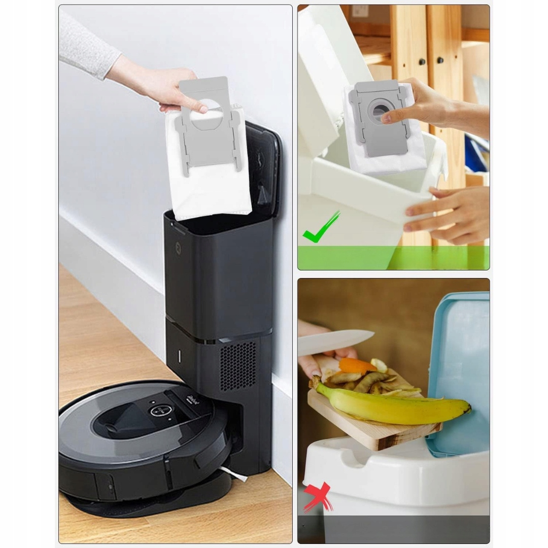 - Kompatybilność: Worki pasują do modeli iRobot i7, i7+, i7 Plus, S9, S9+, S9 Plus, J7, J7+, J7 Plus, E5, E6, E7, i innych urządzeń iRobot z funkcją automatycznego usuwania brudu.