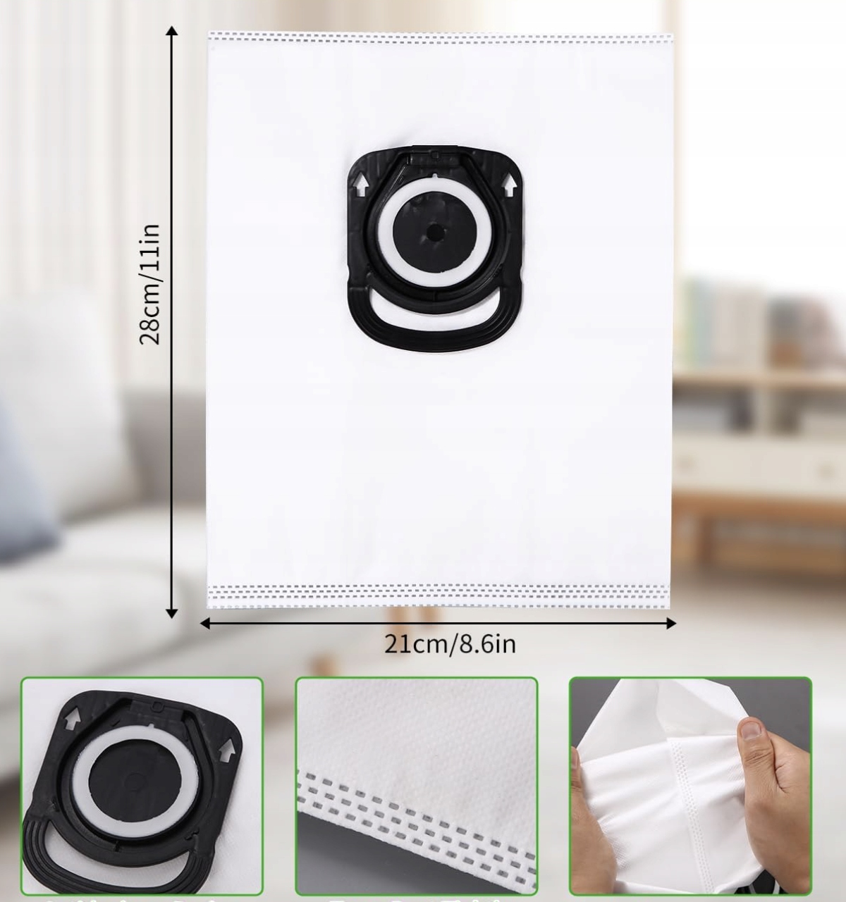 - Materiał: wytrzymały, filtrujący kurz i drobne zanieczyszczenia