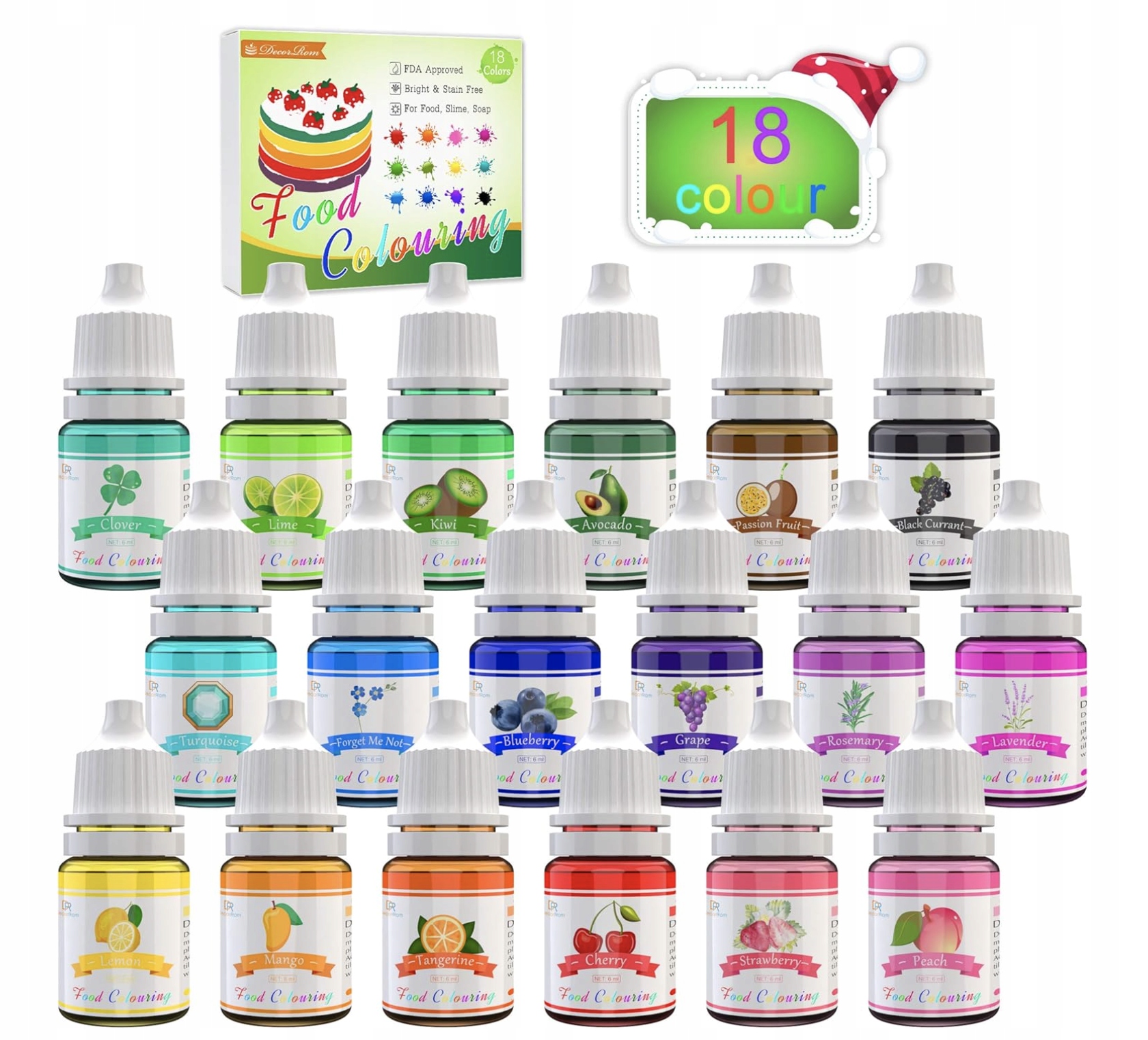 18 Kolorowych Barwników Spożywczych W Płynie Do Ciast Tortów 6 ml