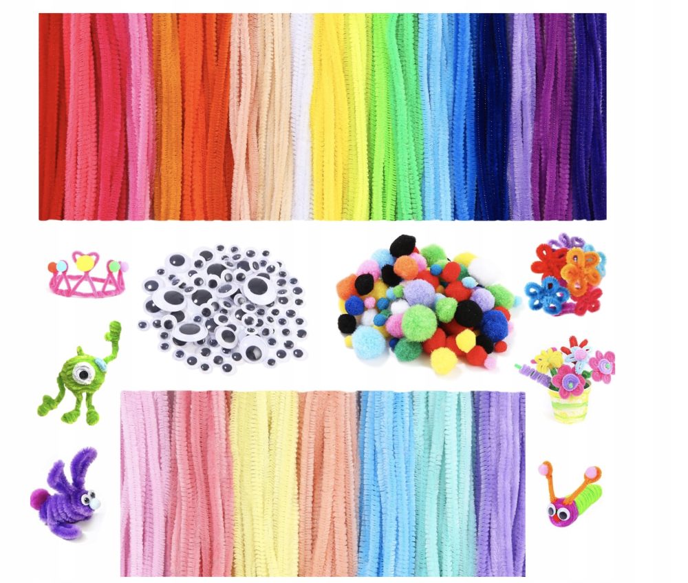➡️ Kolorowe rurki i dodatkowe akcesoria pozwalają na tworzenie nieograniczonej liczby projektów – od zwierząt, przez rośliny, aż po postacie z bajek. Samoprzylepne oczy i pompony dodają charakteru i indywidualności każdemu dziełu. Doskonały zestaw dla młodych artystów i majsterkowiczów.