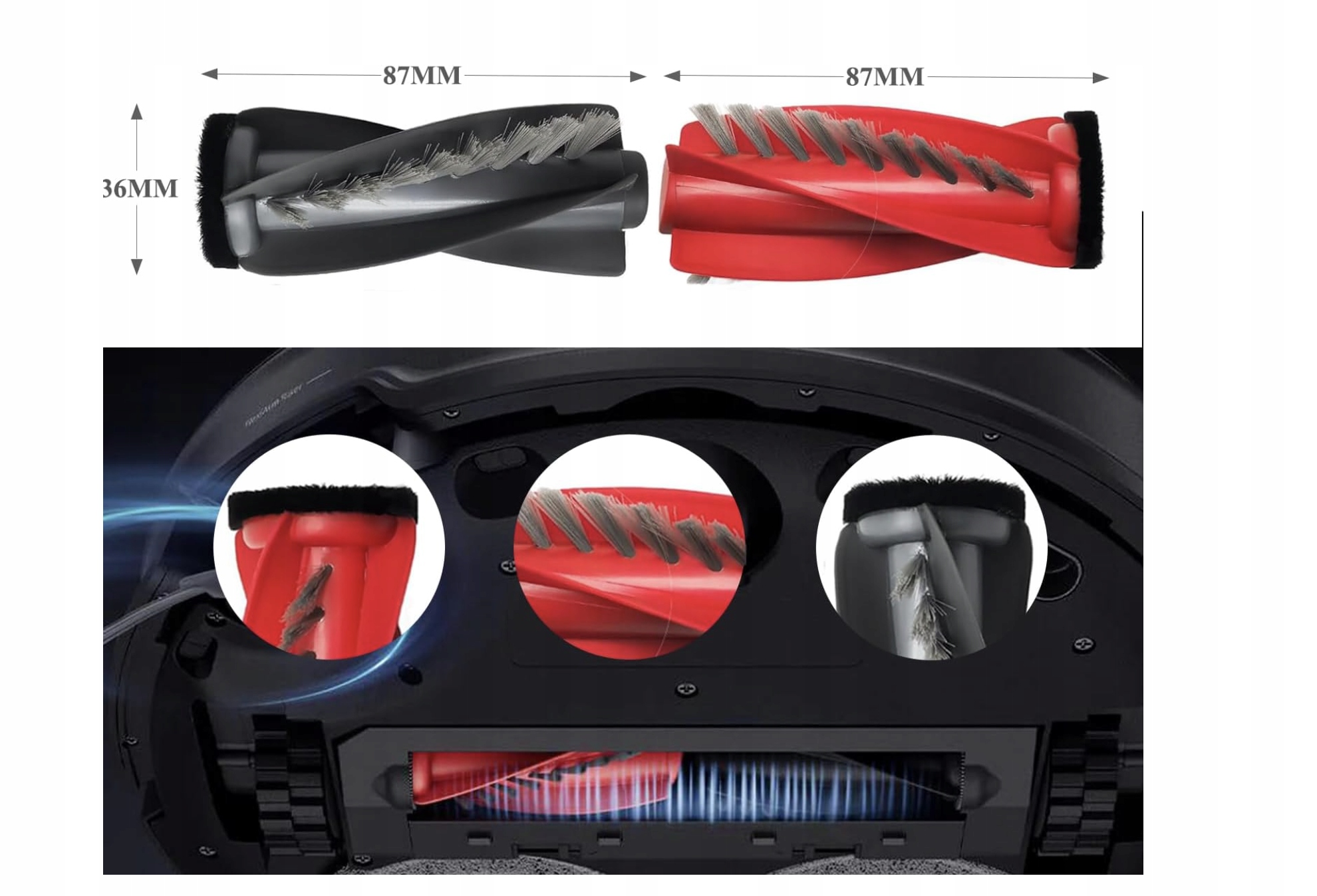Innowacyjna główna szczotka rolkowa i szczotki boczne – bez plątania i uszkodzeń ✅