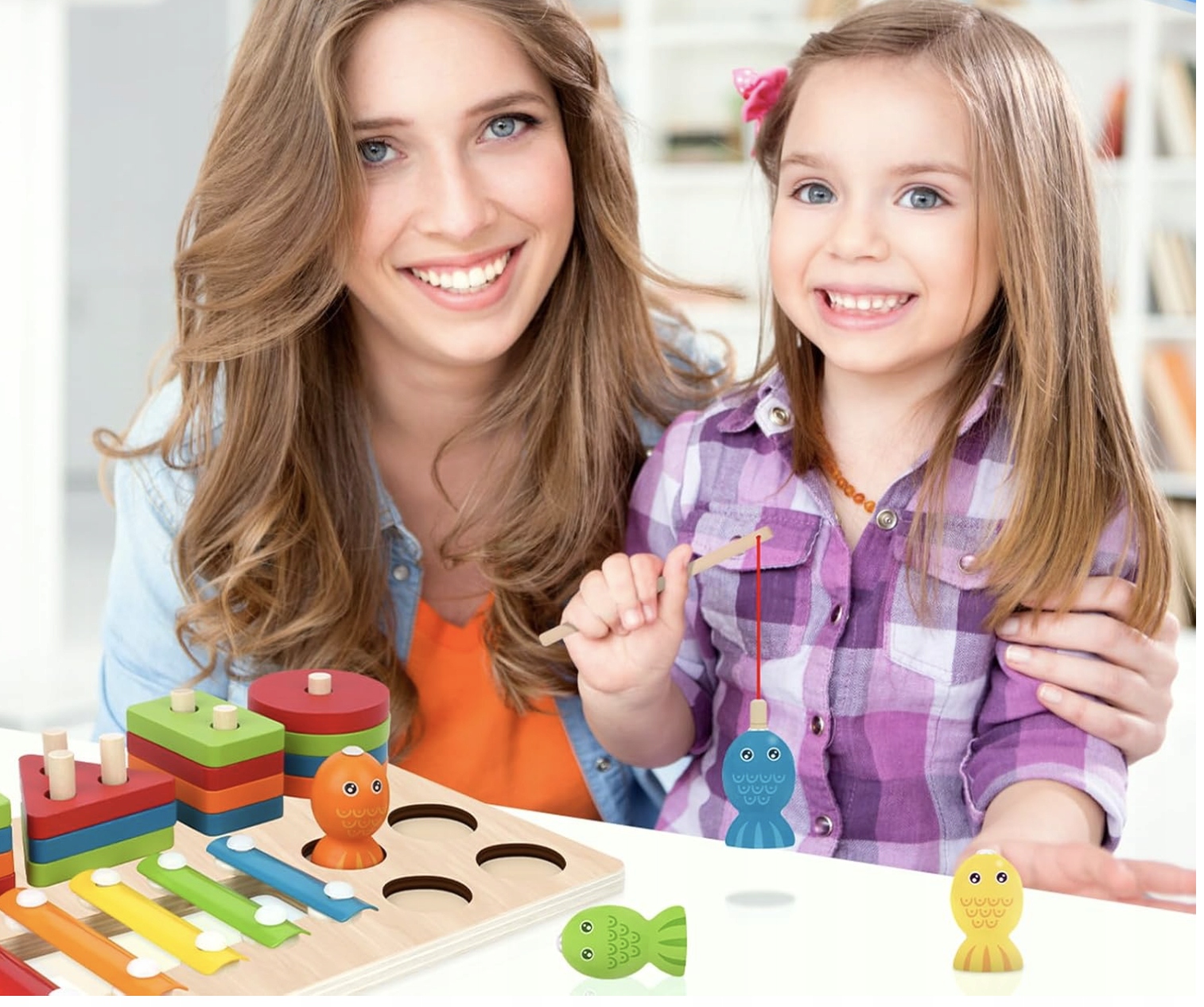 ➡️ Ta zabawka łączy trzy aktywności w jednym – układanie i sortowanie klocków, łowienie rybek magnetycznych oraz granie na mini ksylofonie. Dzięki temu Twoje dziecko angażuje się w zabawę na wiele sposobów, rozwijając kreatywność i spędzając czas w przyjemny, edukacyjny sposób.