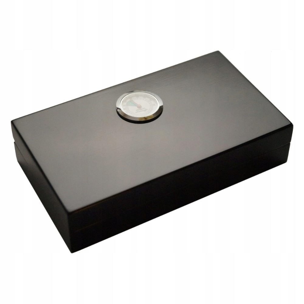 ➡️ Wykonany z hiszpańskiego drewna cedrowego, który zapewnia optymalne warunki przechowywania cygar. Czarna elegancka obudowa i precyzyjny higrometr zapewniają trwałość i efektywność działania.