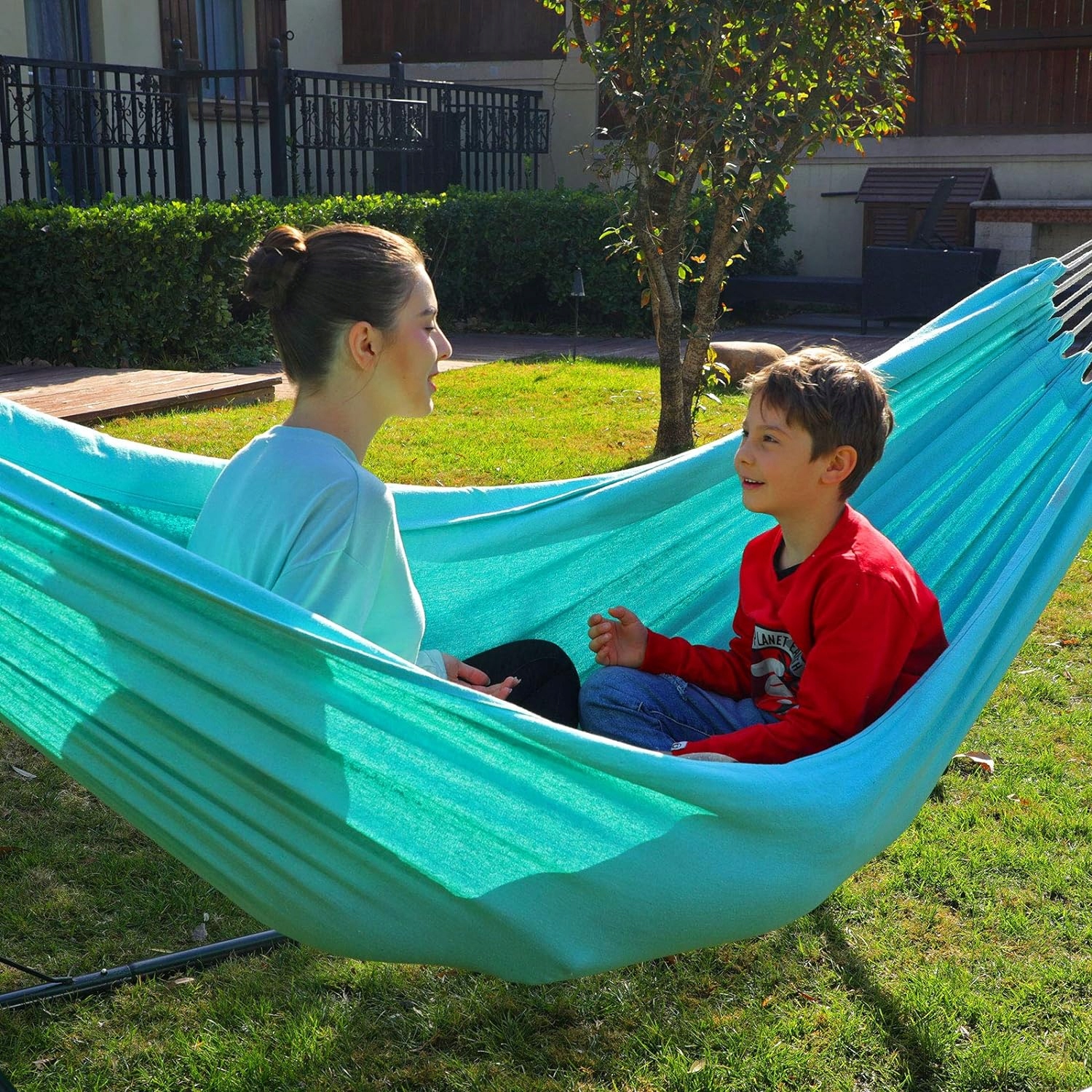 ➡️ Poczuj luksus w każdym centymetrze! Nasz podwójny hamak wykonany jest z grubego, oddychającego materiału o mieszance bawełny i poliestru, zapewniając Ci nie tylko wygodę, ale także trwałość na lata. Odkryj, co to znaczy prawdziwy komfort!