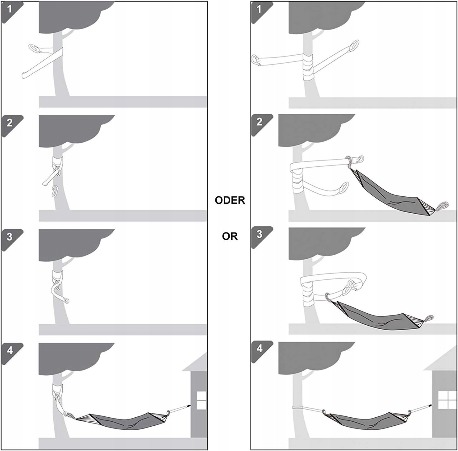 ➡️ Zrelaksuj się w mgnieniu oka! Nasz hamak zapewnia błyskawiczny montaż dzięki 2 pasom mocującym i 2 dużym karabińczykom. Nie trać czasu na skomplikowane konstrukcje – teraz możesz szybko zanurzyć się w błogim relaksie.
