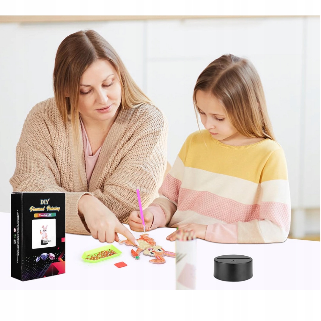 ➡️ Ten zestaw do majsterkowania to idealna okazja do rozwijania kreatywności dziecka! Dzięki malowaniu diamentami dziewczynki mogą stworzyć piękną, błyszczącą lampkę nocną w kształcie uroczego zajączka. Zabawa polega na naklejaniu kolorowych diamentów na folię, co doskonale rozwija zdolności manualne, wyobraźnię i koncentrację. Idealny sposób na spędzenie czasu twórczo!