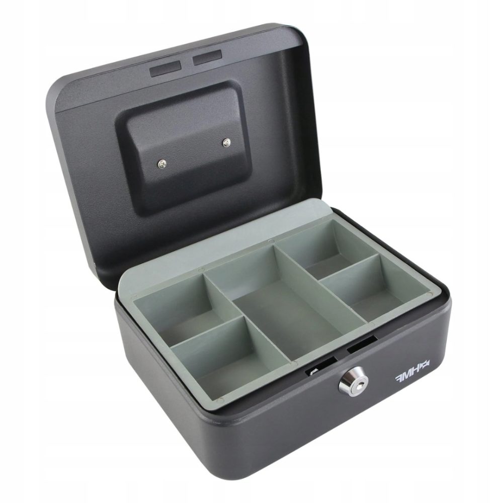 ➡️ W pokrywie kasetki umieszczono praktyczny uchwyt, który ułatwia przenoszenie nawet wtedy, gdy jest pełna. Bez względu na to, czy przenosisz gotówkę w ramach biura, czy między różnymi lokalizacjami, kasetka zapewni Ci wygodę i mobilność.