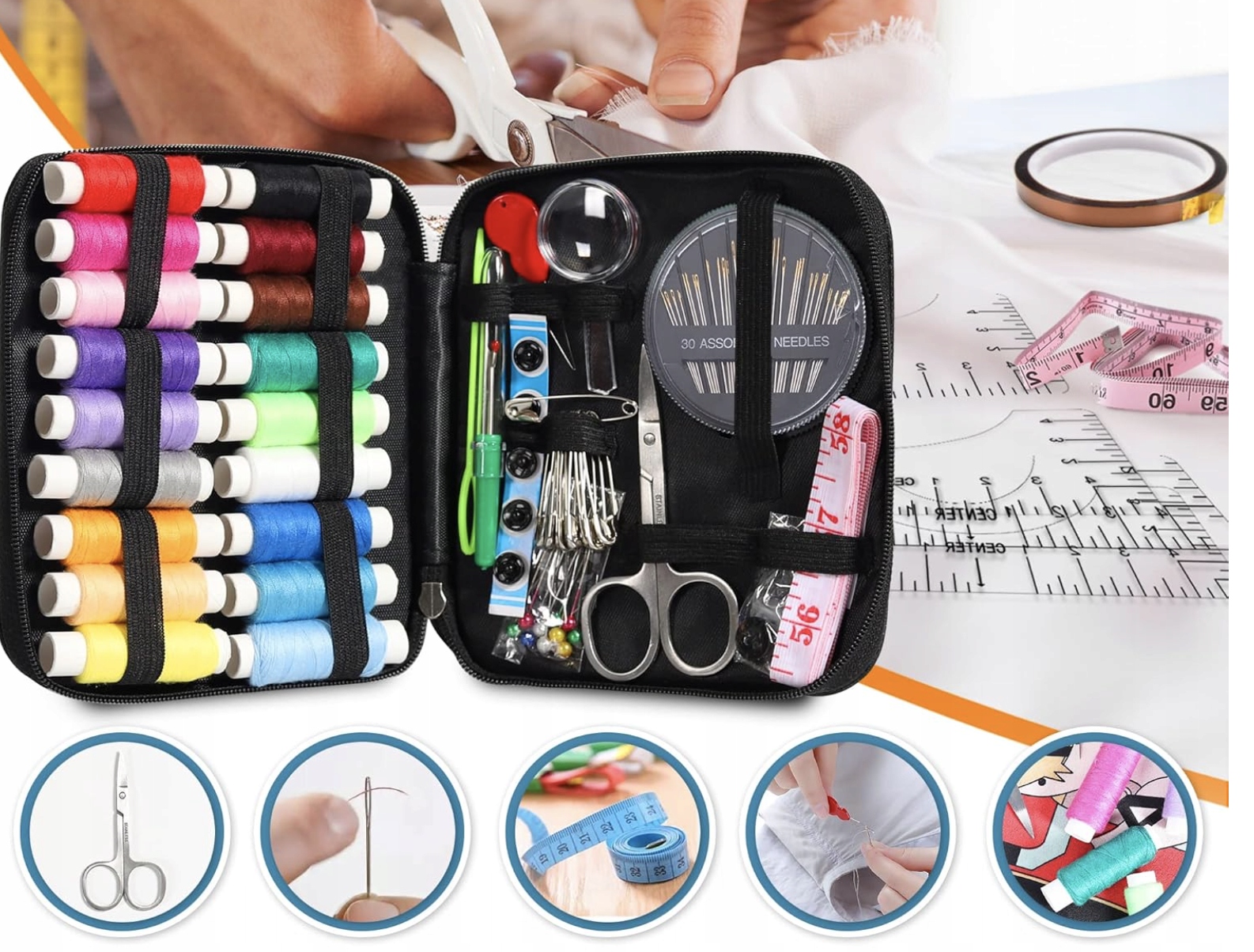 ➡️ Wykonany z trwałych materiałów, nasz zestaw jest idealny do przenoszenia w torbie, plecaku czy walizce. Wszystkie elementy są bezpiecznie uporządkowane, więc szybko znajdziesz potrzebną igłę, nić czy guziki. Idealny do podróży, pracy, szkoły czy nagłych sytuacji awaryjnych.