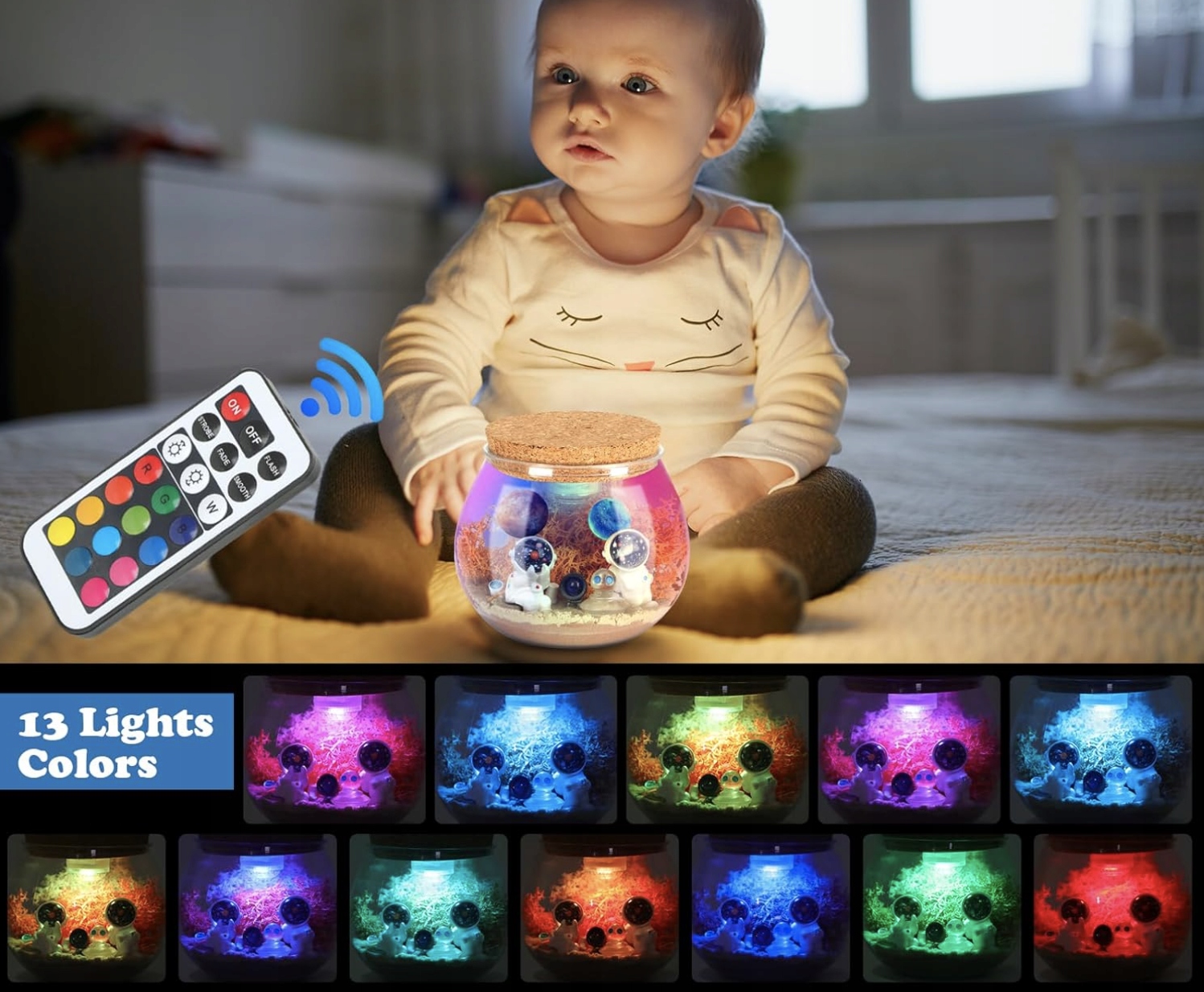 ➡️ Wyjątkowa lampka nocna z regulowanymi kolorami sprawia, że pokój staje się magiczny o każdej porze dnia. Dzięki pilotowi dziecko może zmieniać kolory i tworzyć nastrojowe oświetlenie dopasowane do swoich przygód. To idealny dodatek, który zachwyca i wspiera kreatywność w jednym.