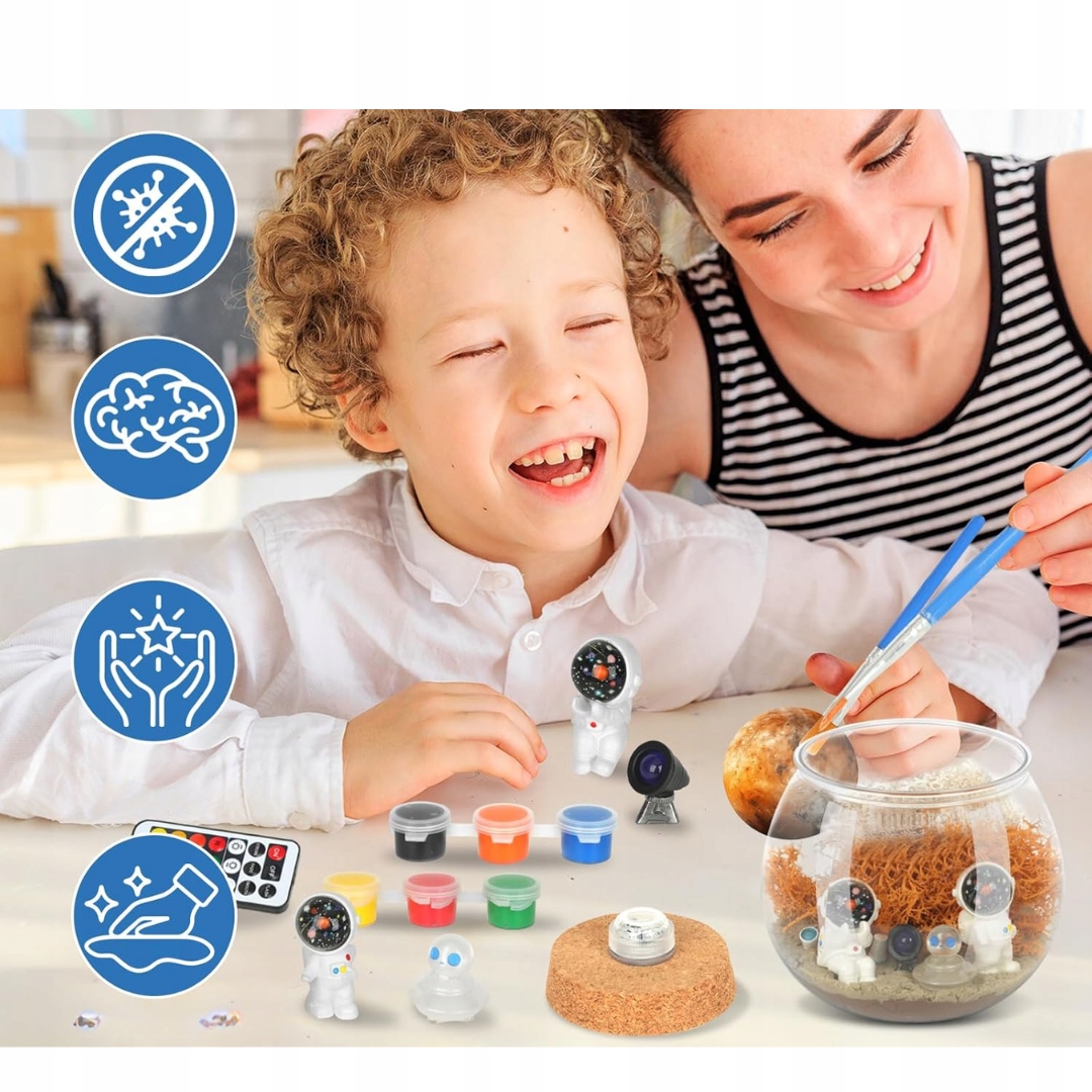 ➡️ Ten zestaw rozwija wyobraźnię, zdolności manualne i koordynację ruchową. Składanie terrarium krok po kroku pozwala dziecku poznawać świat dinozaurów i roślin w bezpieczny, interaktywny sposób. Kreatywne DIY sprawia, że nauka staje się zabawą, a każdy element terrarium inspiruje do tworzenia własnych historii.
