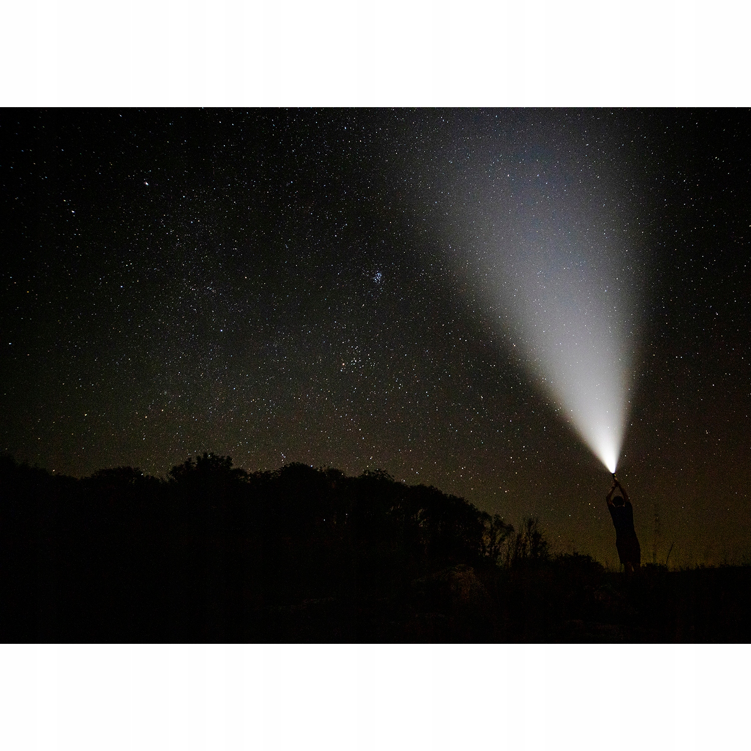 ➡️ Zasilana dwoma akumulatorami 26650 mAh, zapewnia długotrwałe świecenie. Ładowanie przez USB z diodowym wskaźnikiem naładowania dodaje wygody użytkowaniu.