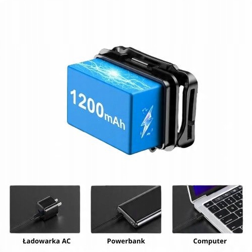 ✨CZOŁOWA LATARKA LED + MOCNA WODOODPORNA | USB AKMULATOR LAMPA PRO 1200 LMm✨