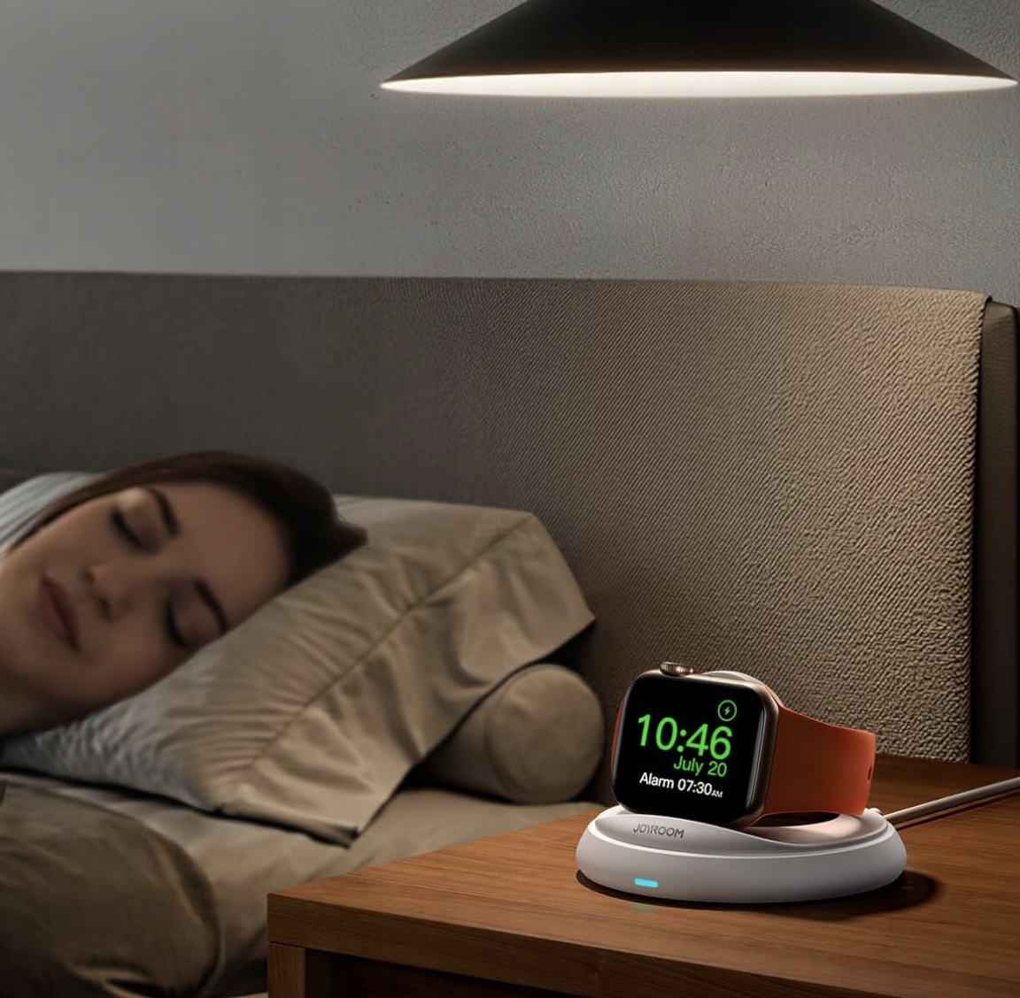 ➡️ Wystarczy ustawić zegarek na ładowarce, by korzystać z funkcji nocnego zegarka i budzika. Kąt nachylenia sprawia, że godzina i stan baterii są zawsze dobrze widoczne. To praktyczne rozwiązanie, które zmienia ładowarkę w funkcjonalną stację nocną.
