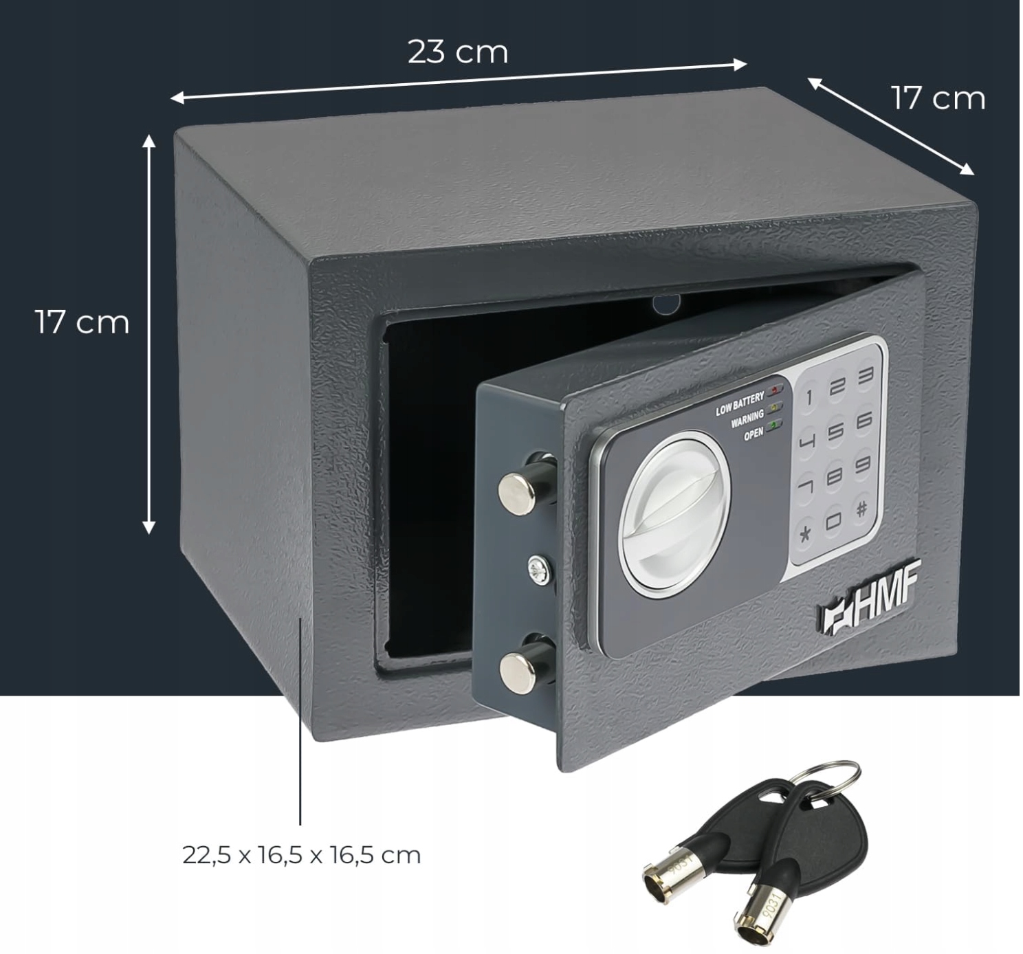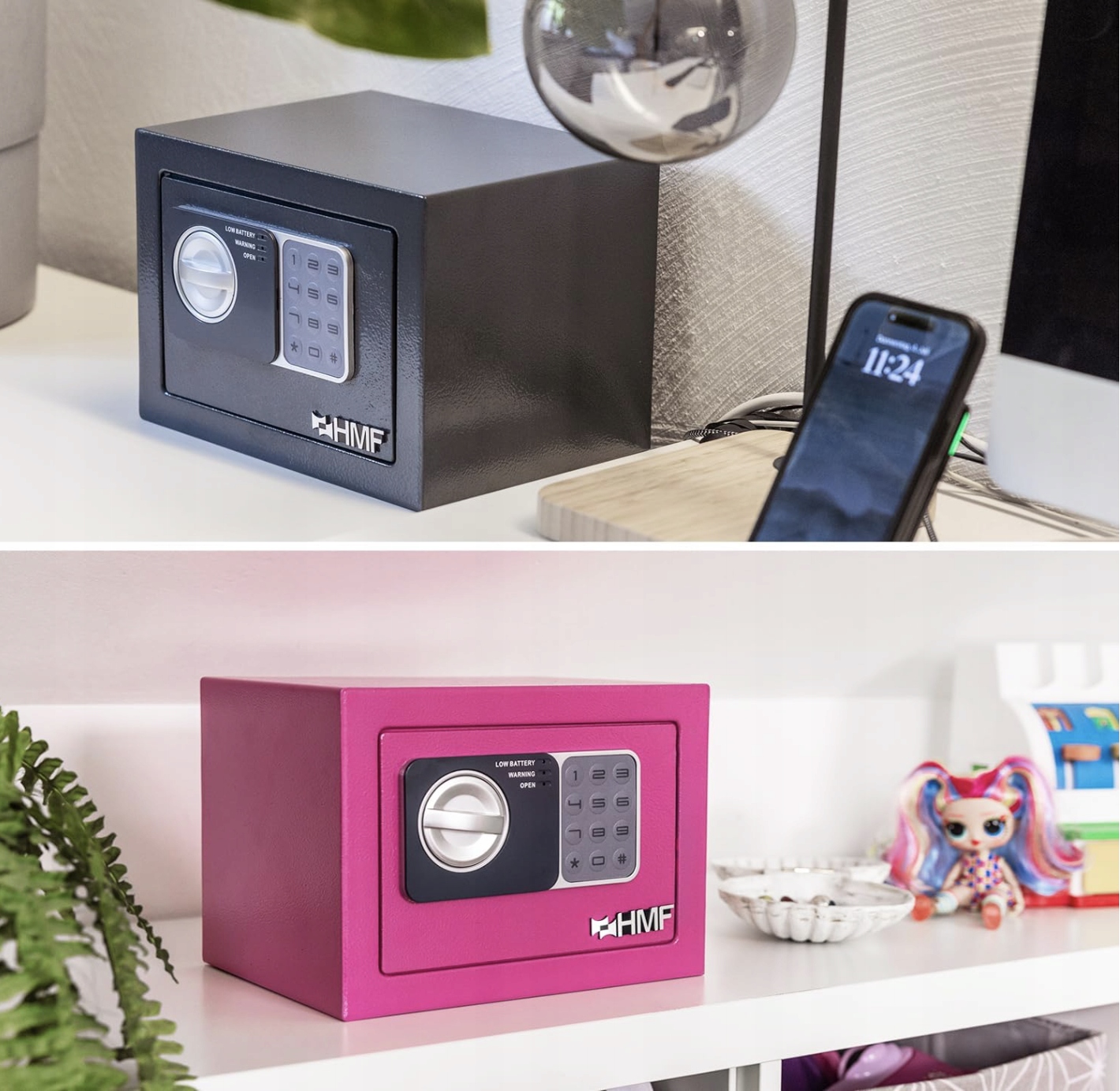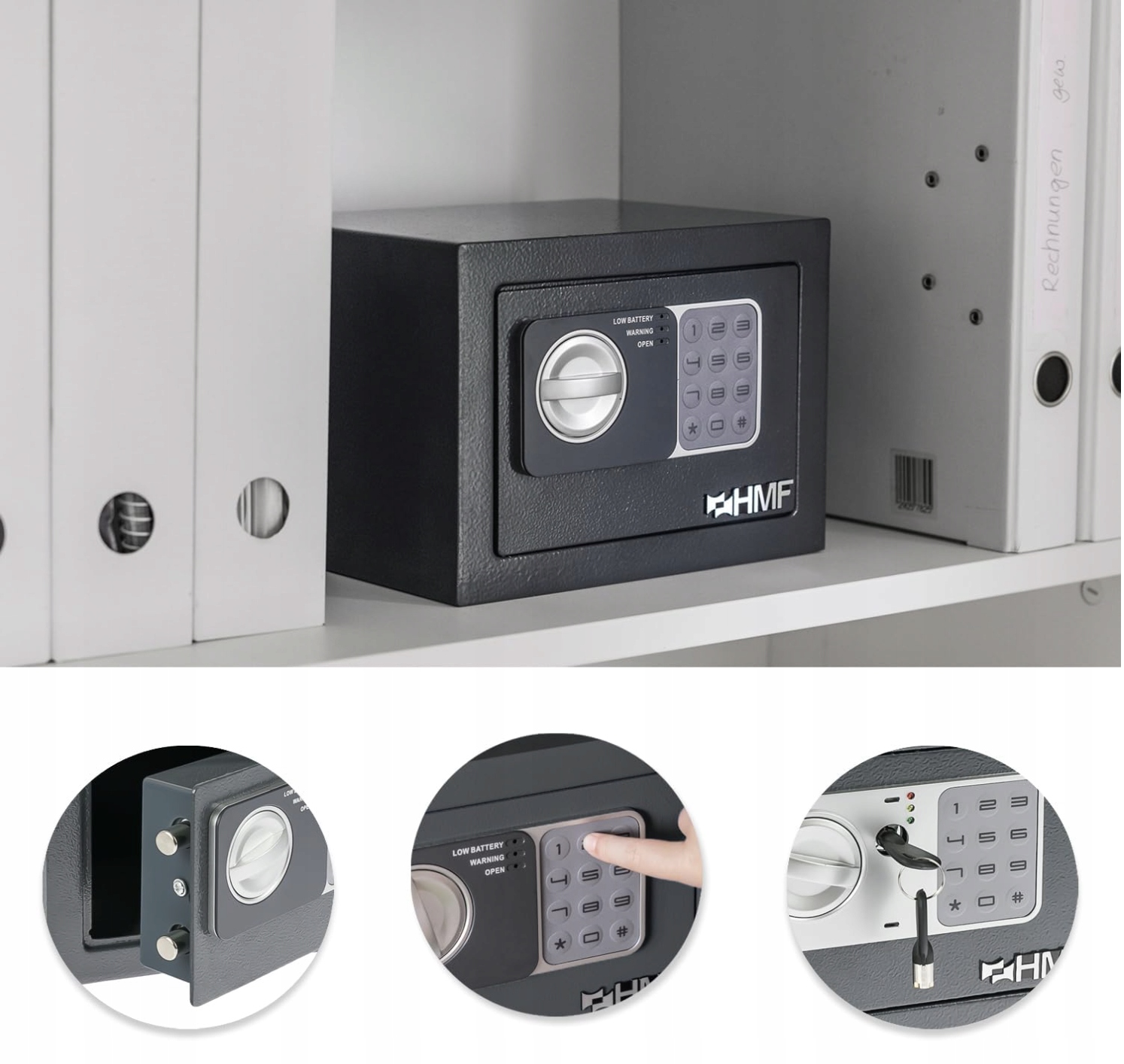 ➡️ Mały sejf HMF 46126-11 to idealne rozwiązanie, gdy potrzebujesz skutecznej ochrony gotówki, dokumentów i kosztowności w domu, biurze, sklepie czy hotelu. Kompaktowe wymiary pozwalają dyskretnie umieścić go w meblu lub zamocować do ściany albo podłogi. Dzięki temu Twoje najcenniejsze rzeczy są zawsze pod ręką, a jednocześnie bezpieczne przed dostępem osób trzecich.