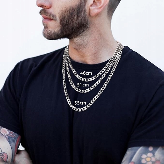 ➡️ Nasz łańcuszek pancerka to idealny dodatek zarówno dla mężczyzn, jak i kobiet. Z szerokością 5/9 mm i dostępnością w trzech długościach (18, 20, 22 cale) oraz bransoletką o długości 21 cm (8,3 cala), znajdziesz idealny rozmiar dla siebie lub bliskiej osoby. To doskonały wybór, który pasuje do różnych stylów i pozwala wyrazić swój indywidualny styl.