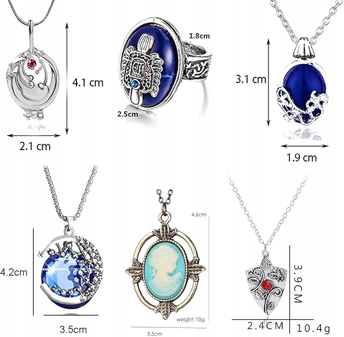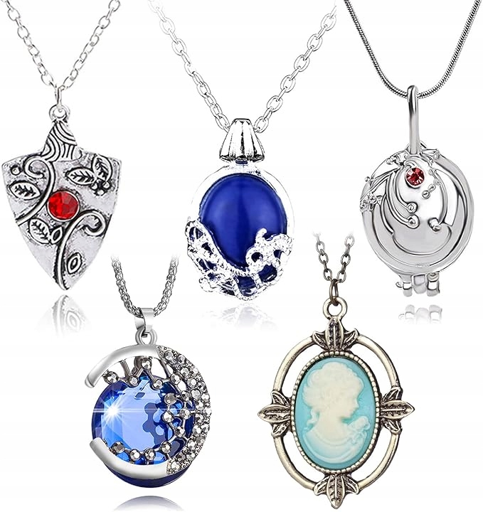 ➡️ Zestaw zawiera 5 naszyjników inspirowanych postaciami Katherine, Sapphire i Elena Gilbert oraz medalionem z werbeną. Idealny dla fanów serialu i miłośników wyjątkowej biżuterii, która łączy styl z tematyką fantasy i cosplay.