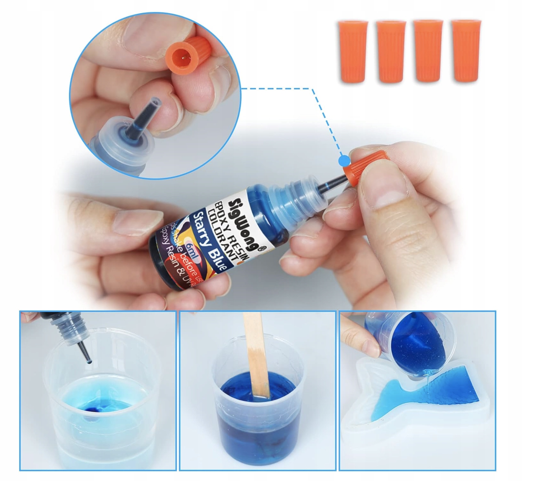 ➡️ Nasze pigmenty są wysoce skoncentrowane i łatwo mieszają się z żywicą epoksydową, zapewniając intensywne, półprzezroczyste kolory. Możesz mieszać różne pigmenty, aby uzyskać własne odcienie lub dodać biały, aby stworzyć warstwę wierzchnią. Pamiętaj, że nadmiar pigmentu może wydłużyć czas utwardzania żywicy.