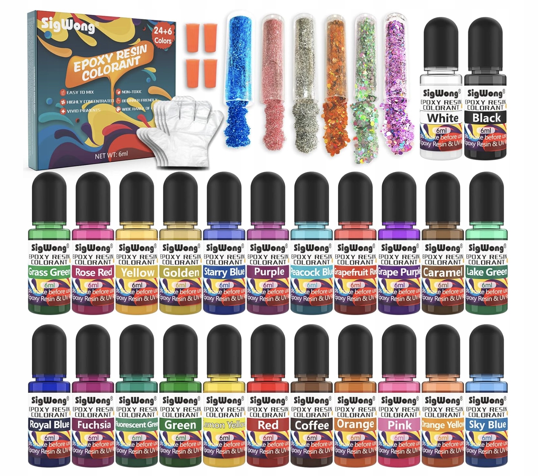 Pigmenty Do Żywicy Epoksydowej 24+6 Kolorów Brokat Akcesoria DIY