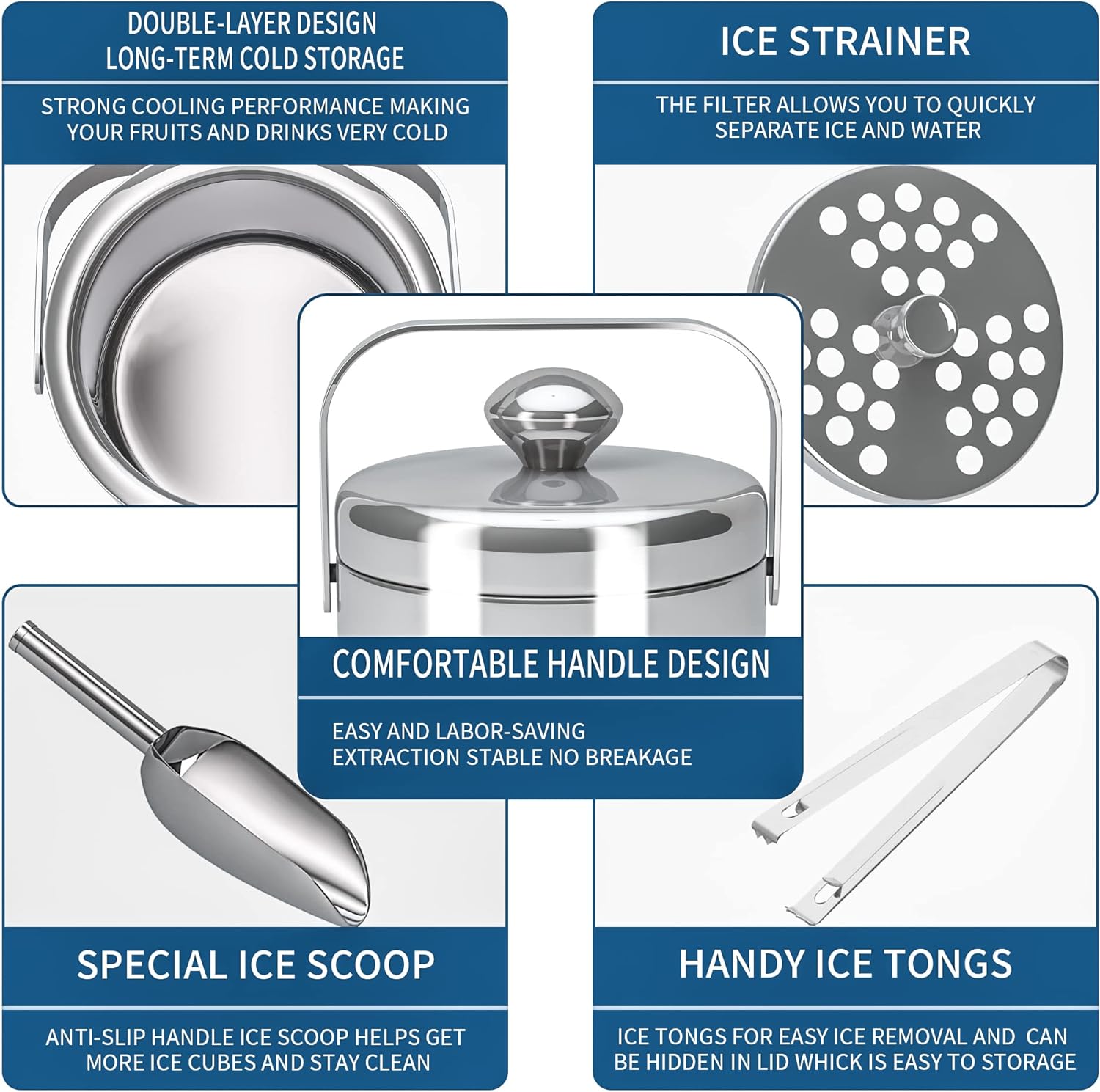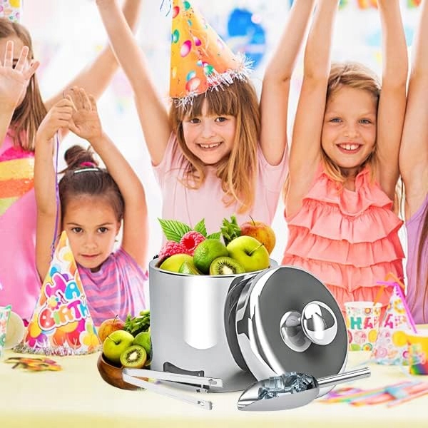 ➡️ Ten wyjątkowy pojemnik na lód ze stali nierdzewnej to nie tylko elegancki dodatek do Twojego stołu, ale także praktyczne narzędzie do schładzania napojów. Wyposażony w różnorodne elementy, zapewnia wygodne przechowywanie i serwowanie lodu podczas imprez i spotkań.
