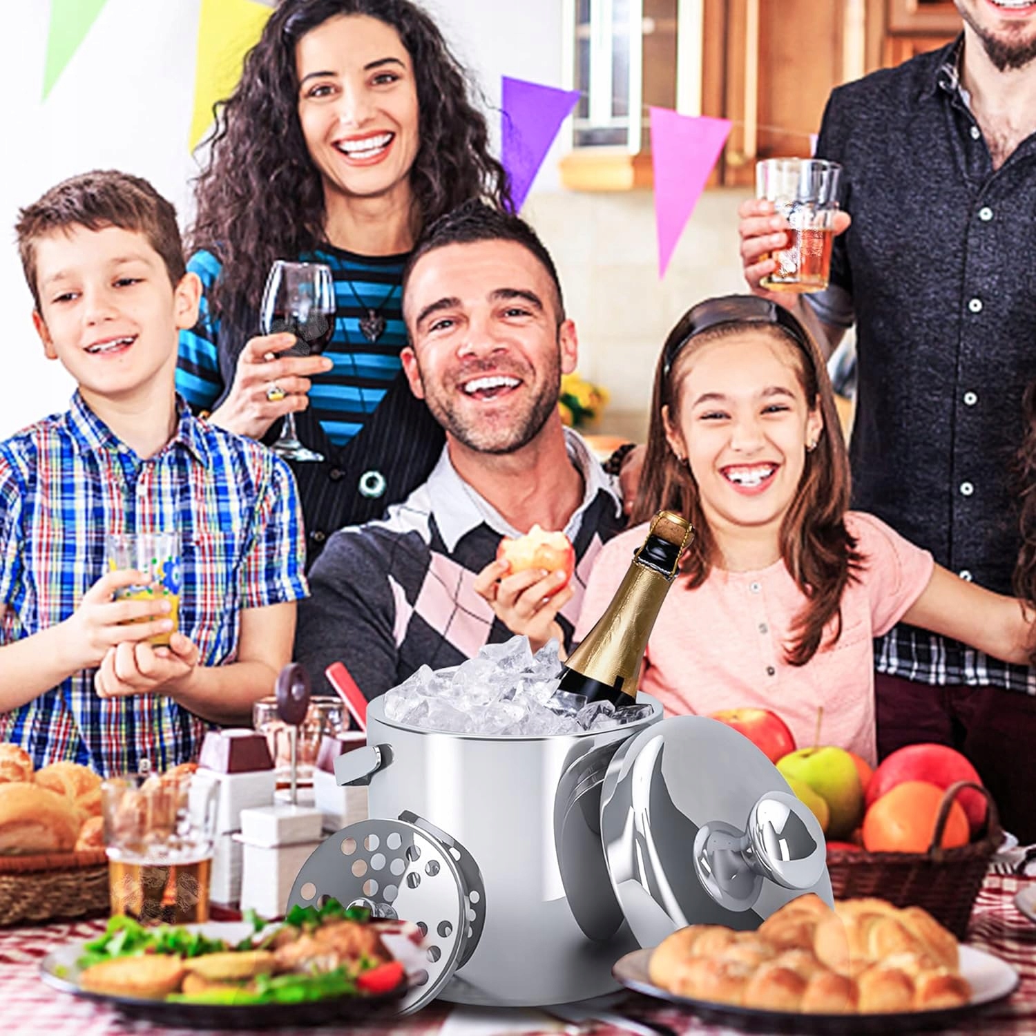➡️ Z pojemnością 3 litrów, ten pojemnik na lód ze stali nierdzewnej pomieści wystarczającą ilość lodu, aby schłodzić ulubione alkohole czy napoje na każdej imprezie. Idealnie sprawdzi się zarówno podczas imprez w domu, jak i na zewnątrz, na grillu czy pikniku.