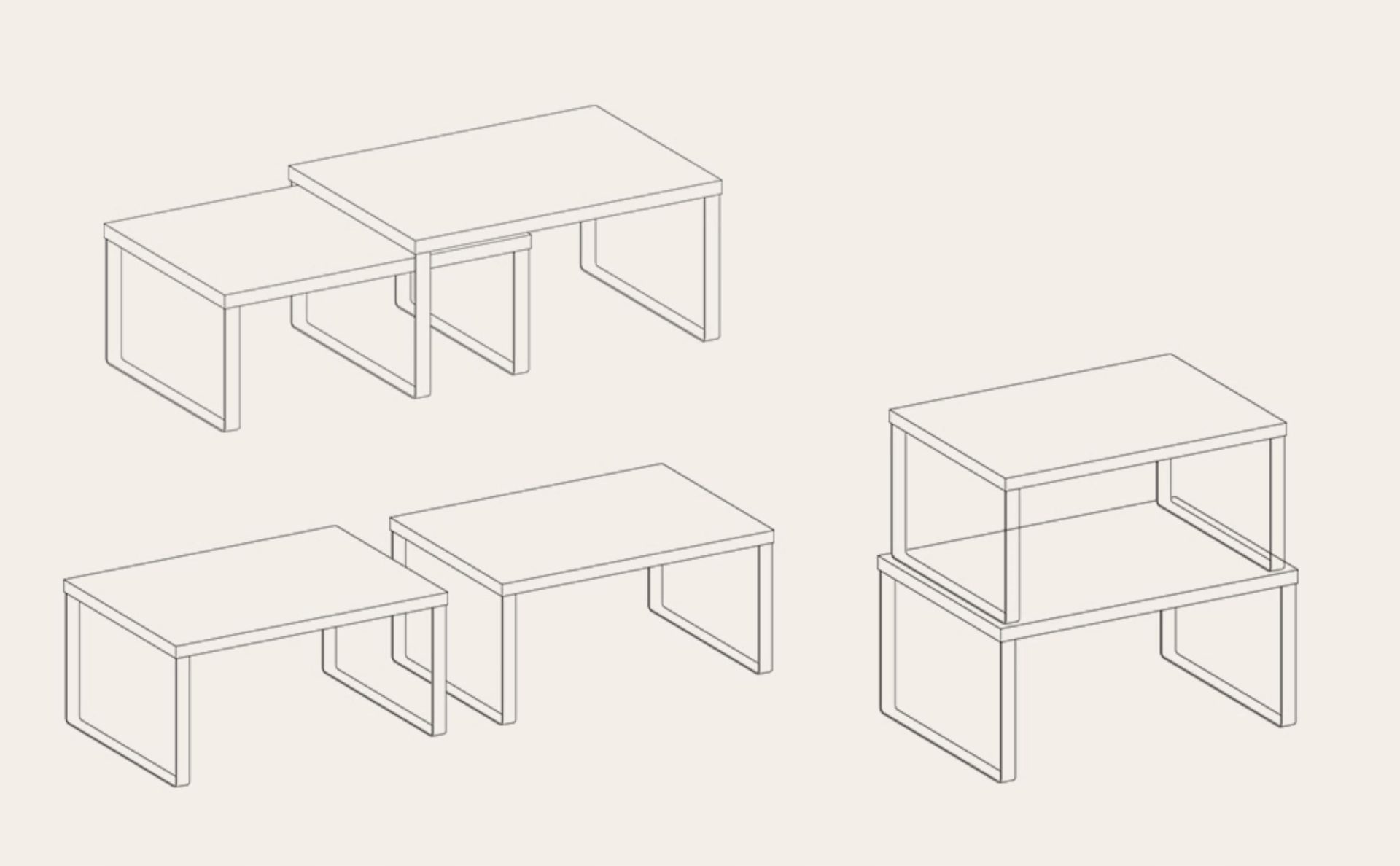Półki kuchenne można ułożyć jedna na drugiej, zagnieździć je w sobie, rozdzielić je lub umieścić w kształcie litery L, aby dopasować je do swojej przestrzeni.