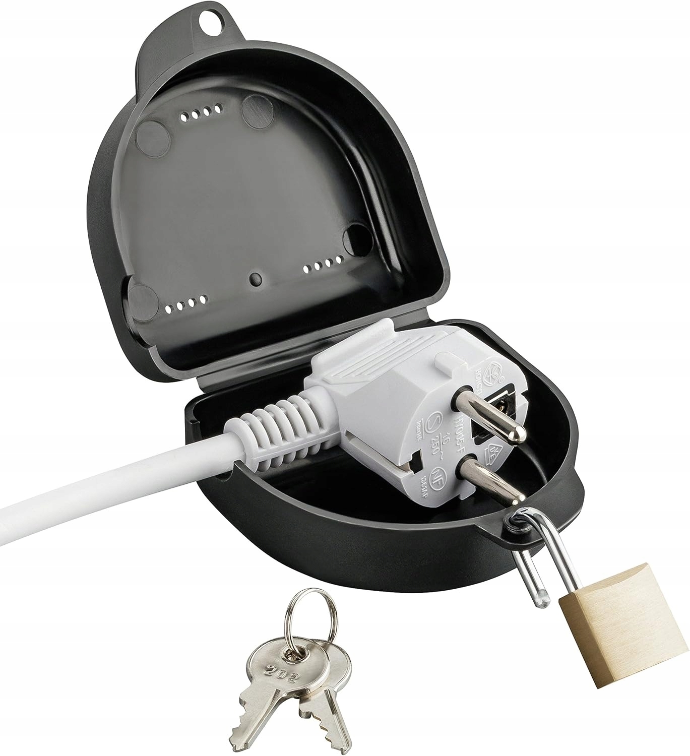 ➡️ W zestawie znajduje się solidna kłódka z dwoma kluczami, która umożliwia szybkie otwarcie tylko upoważnionym osobom. To idealne rozwiązanie dla wszystkich, którzy chcą kontrolować dostęp do urządzeń elektrycznych, zapewniając pełną wygodę i bezpieczeństwo.