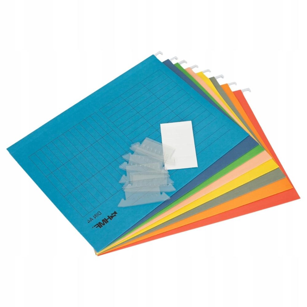- Zawartość zestawu: 8 teczek wiszących z pełnymi widocznymi zakładkami i tabliczkami do opisywania
