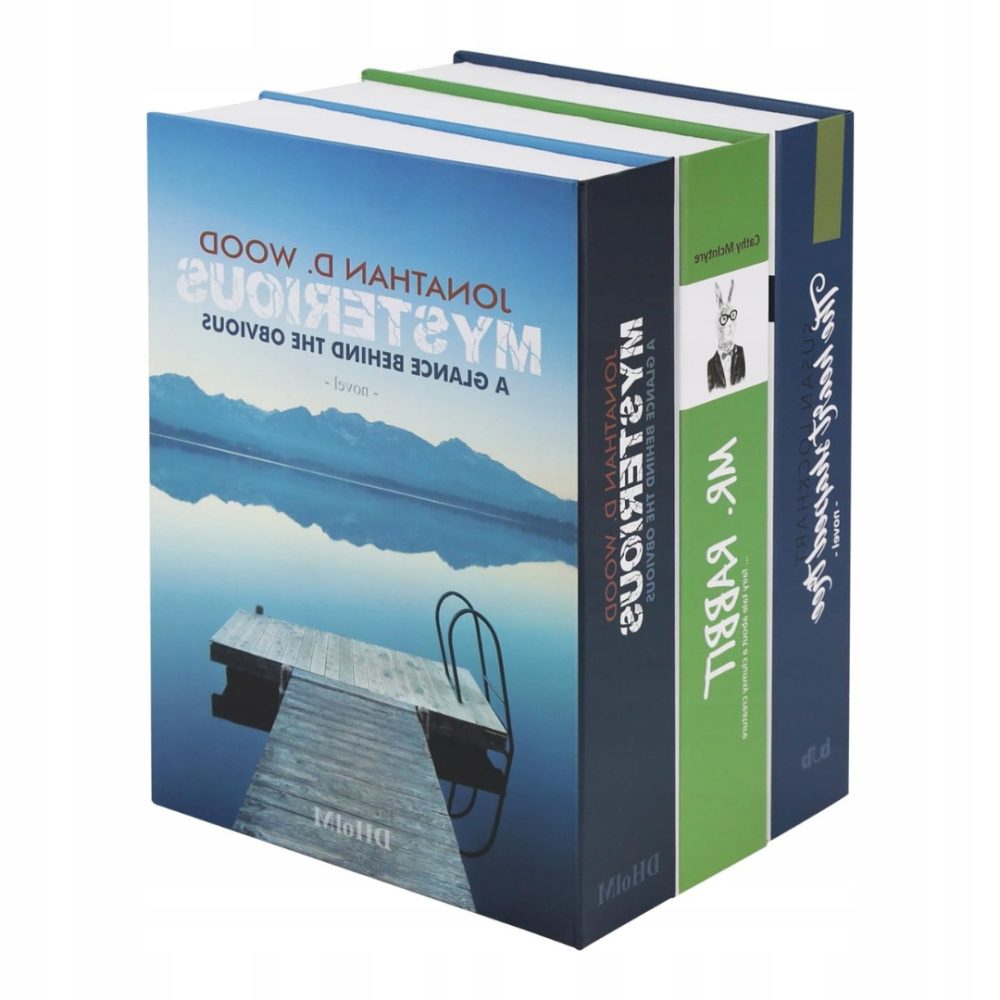 ➡️ Składa się z trzech książek, tworzących jedną zintegrowaną kryjówkę. Tytuły książek to “Pride and Prejudice” Hugh Thomsona, “Święty krajobraz” Hugh Thomsona oraz “Pride and Prejudice” Jane Austen, co zapewnia naturalny wygląd na każdej półce.