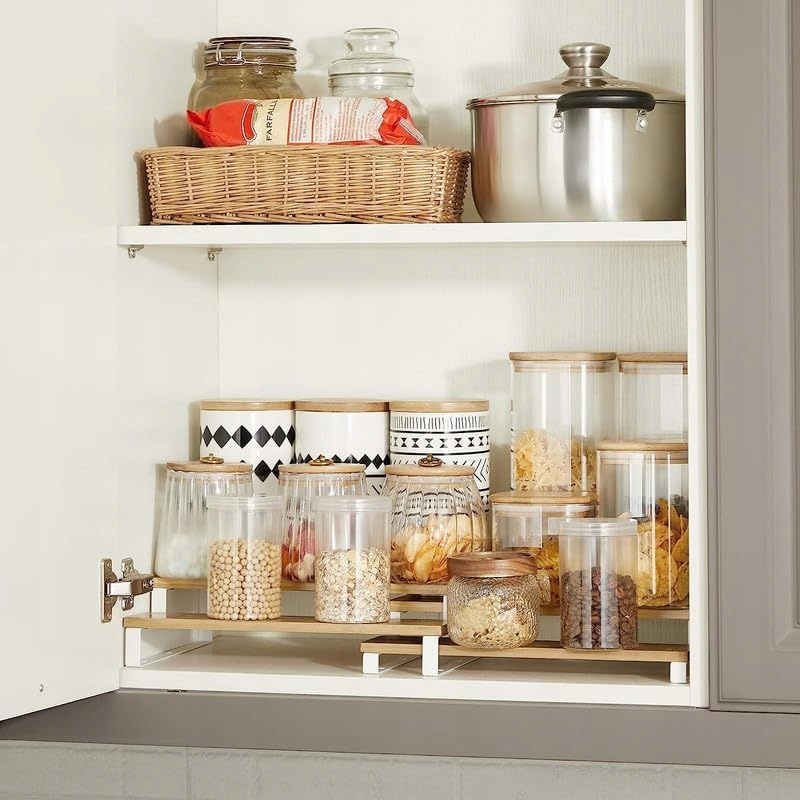 ➡️ Dzięki wysuwanej konstrukcji, nasze regały kuchenne doskonale wpasują się w różnorodne środowiska kuchenne. Możesz używać ich oddzielnie jako dwa regały, maksymalizując przestrzeń do przechowywania i realizując swoje marzenia o idealnym porządku.