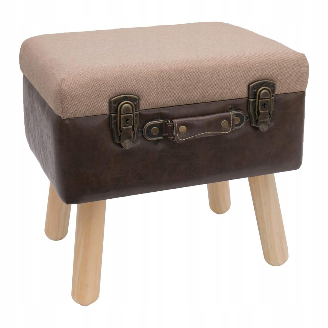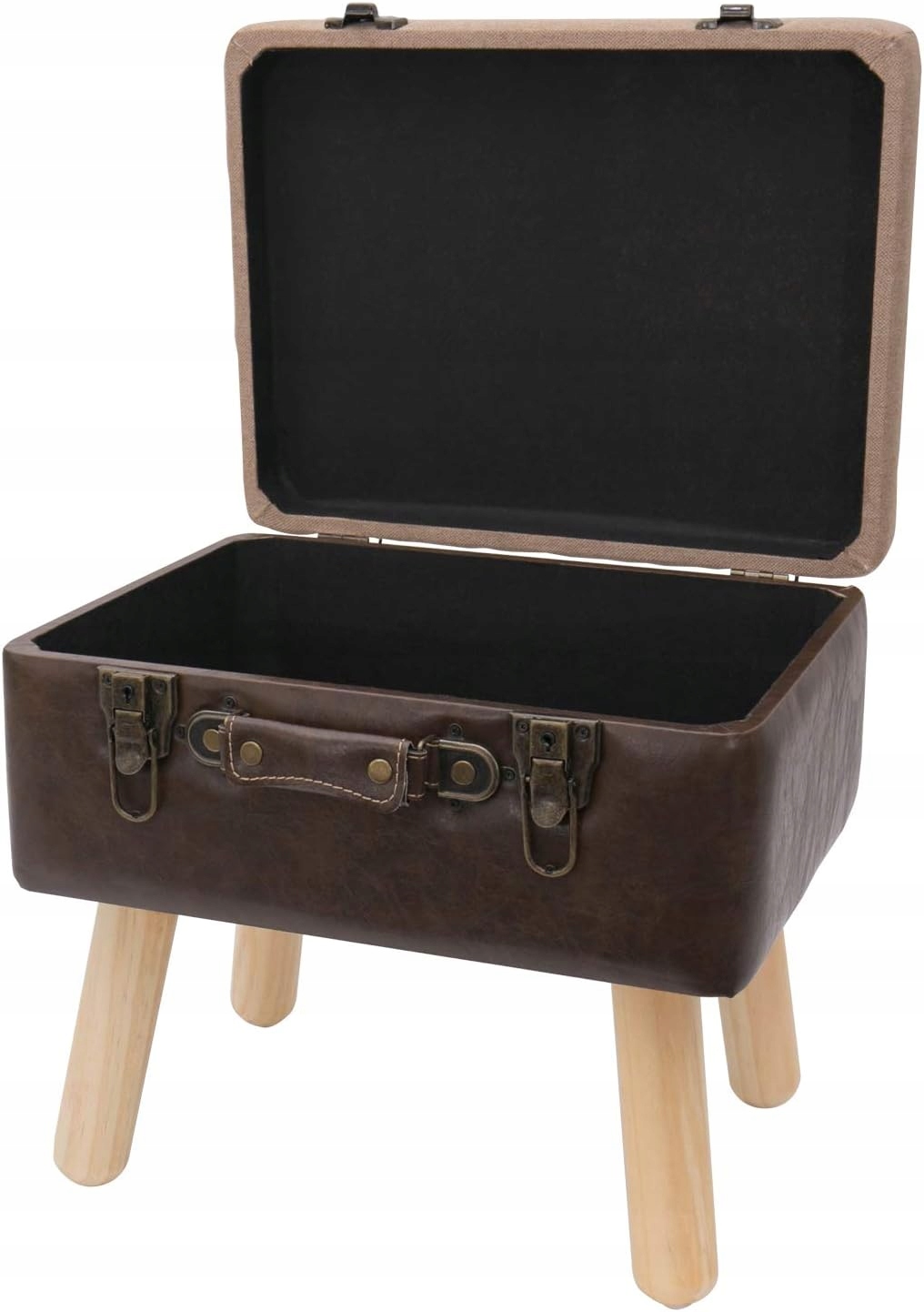 ✨STOŁEK W STYLU VINTAGE | Z DREWNIANYM MIEJSCE DO PRZECHOWYWANIA | BRĄZOWE✨