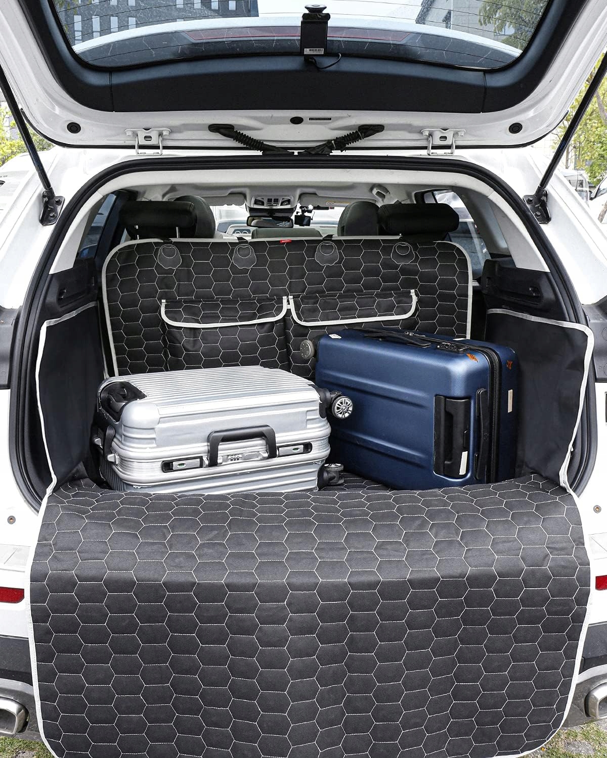 ➡️ Mata do bagażnika została wykonana z tkaniny Oxford 600D, wypełnieniem PP bawełnianym, poliestru 210D oraz powłoki PVC antypoślizgowej. Dzięki czterowarstwowej konstrukcji zapewnia doskonałą ochronę przed kurzem, sierścią, wilgocią, zadrapaniami i brudem. Jest to idealne rozwiązanie dla właścicieli psów, którzy chcą zachować czystość i porządek w bagażniku, a jednocześnie dbać o komfort swojego pupila podczas każdej podróży.