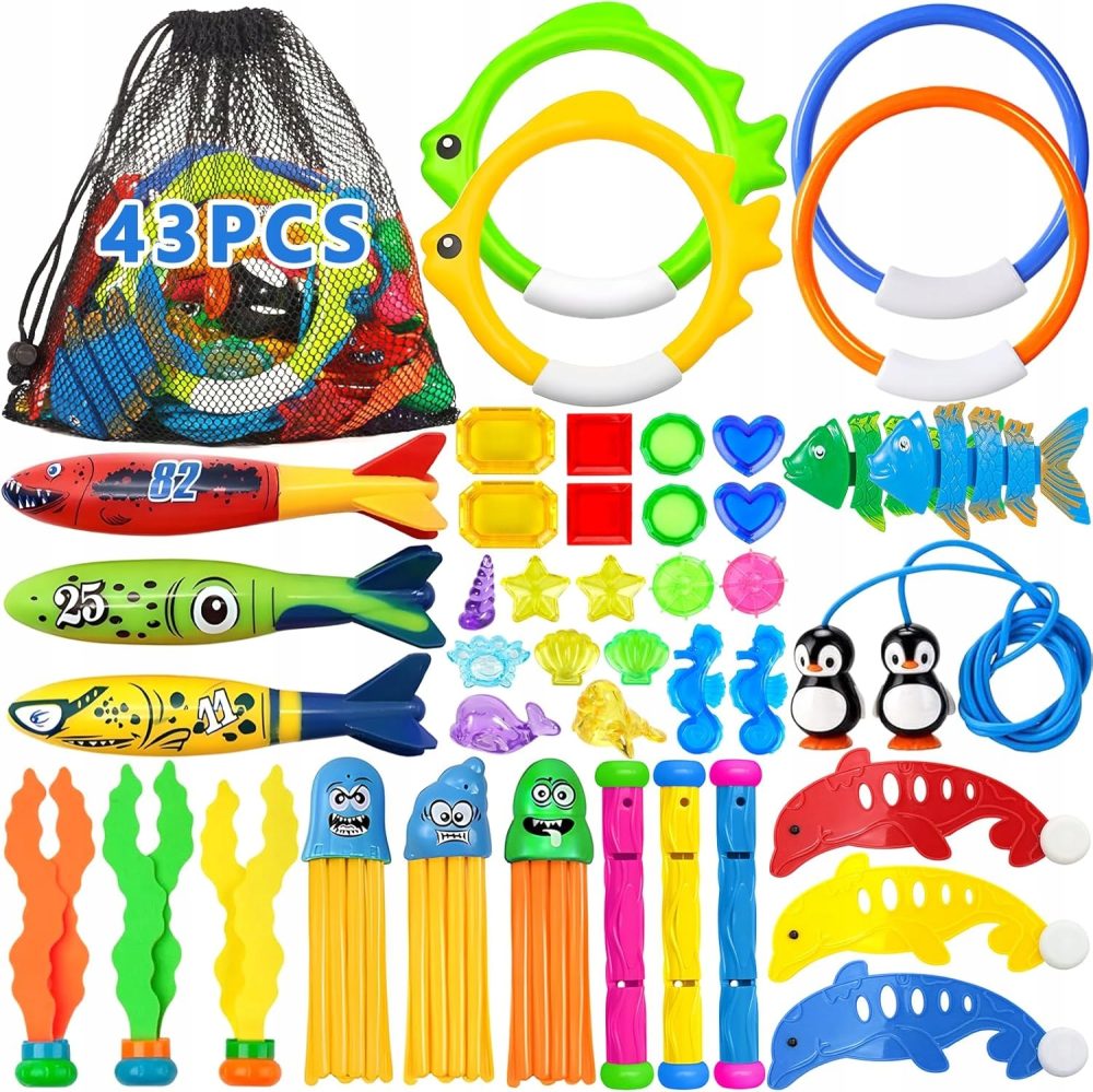 Zestaw 43 Zabawek do Nurkowania w Basenie dla Dzieci Kolorowe Pierścienie