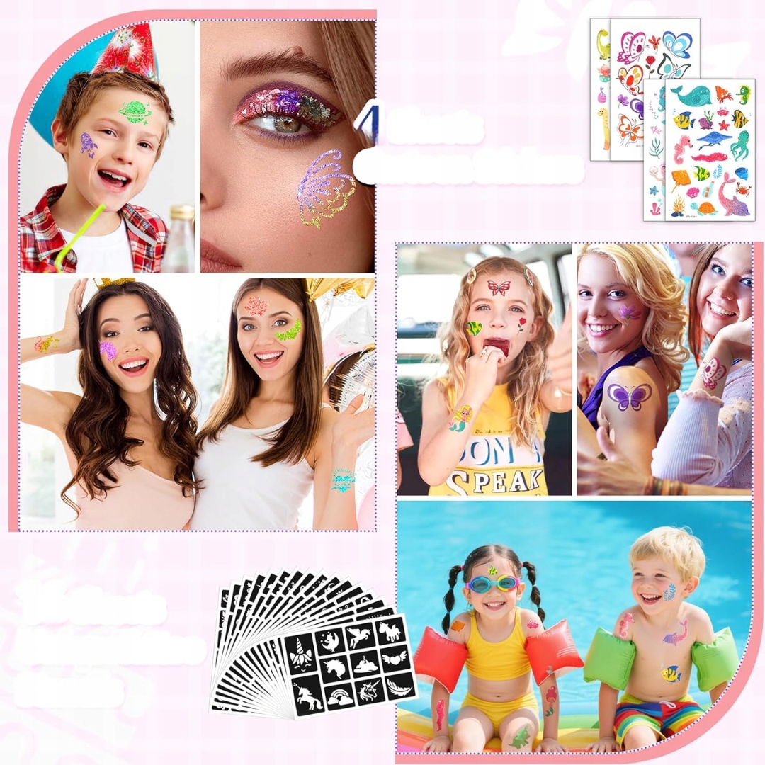 Zestaw Brokatowych Tatuaży Dla Dziewczynek 36 Kolorów 220 Szablonów 3 kleje