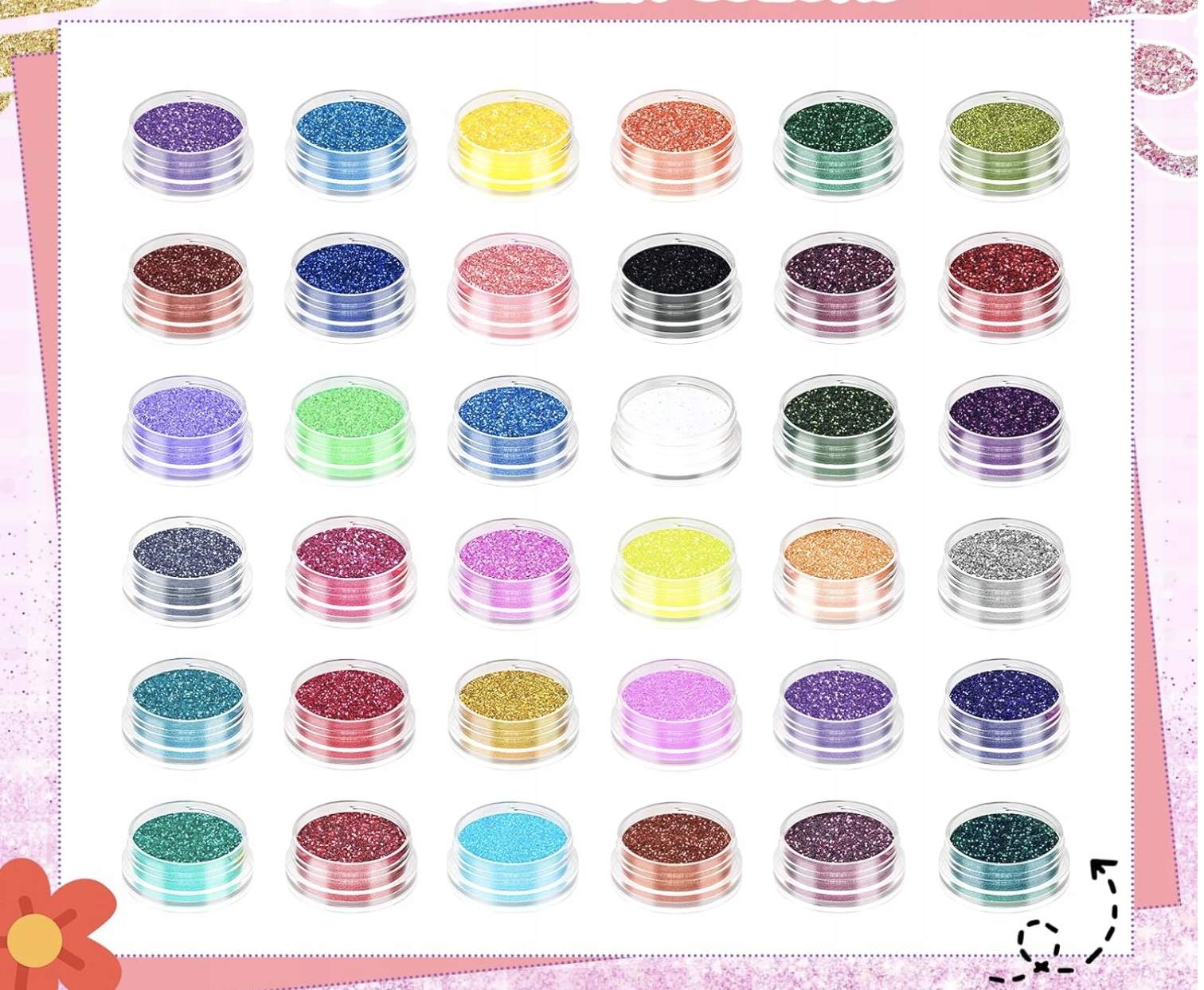 - Liczba kolorów brokatu: 36 (3 g każdy)