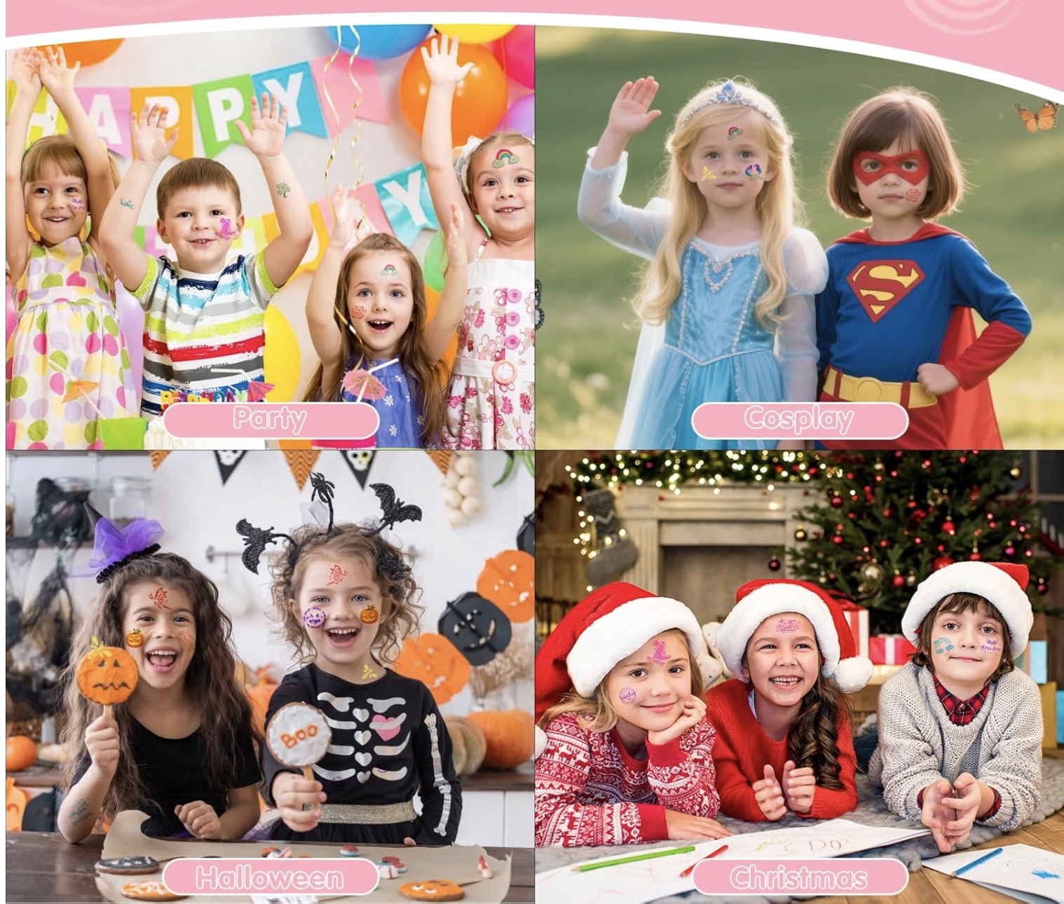 ➡️ Ten zestaw brokatowych tatuaży to idealny wybór na urodziny, Dzień Dziecka, Boże Narodzenie, Halloween czy przyjęcia karnawałowe. Rozwija kreatywność, sprawia radość i zapewnia długie godziny twórczej zabawy. Doskonały zarówno dla dziewczynek, jak i chłopców, którzy kochają kolorowy błysk i własnoręcznie wykonane tatuaże.