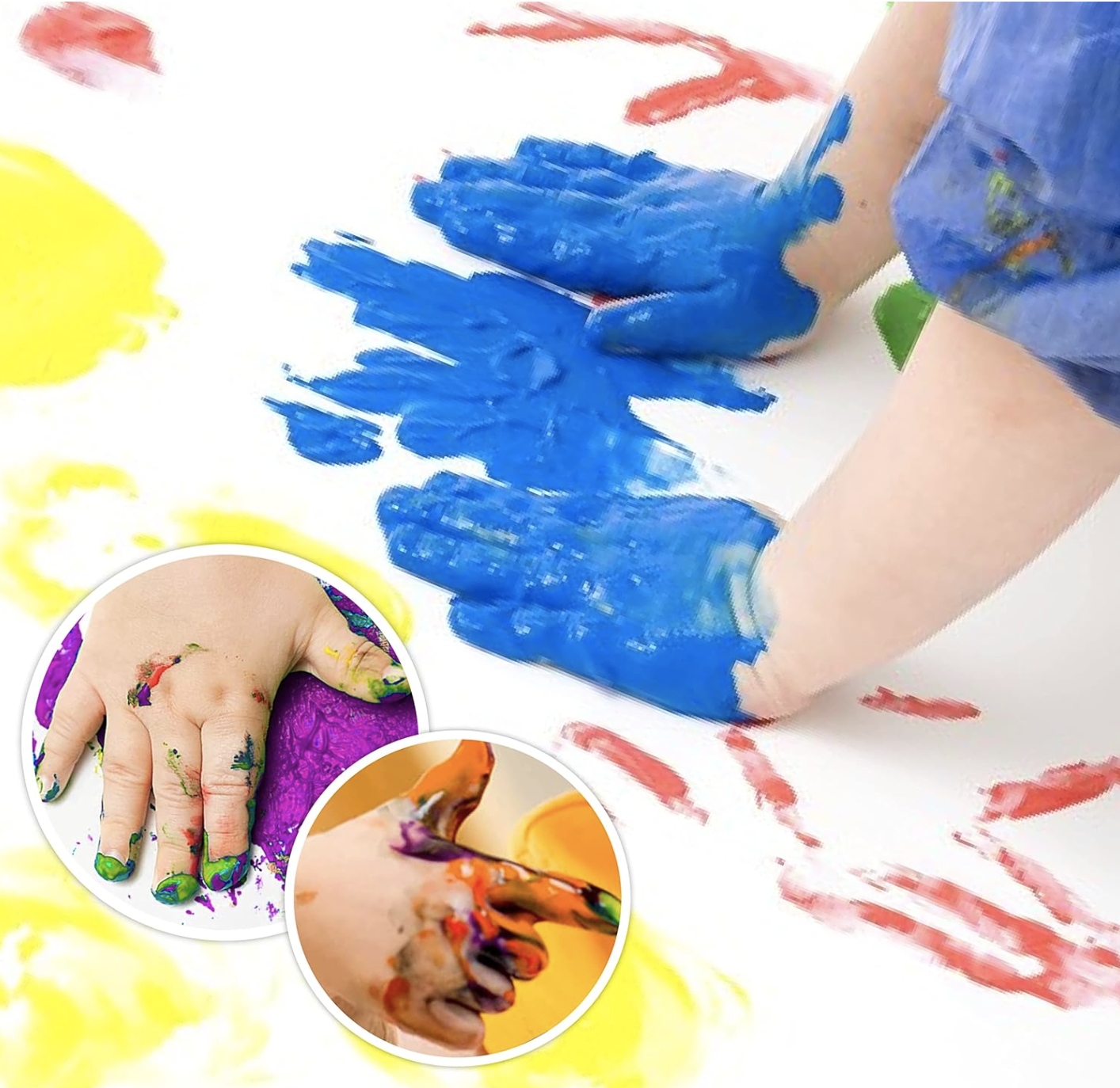 ➡️ Malowanie palcami nie tylko bawi, ale też wspiera rozwój umiejętności manualnych, koordynacji ręka-oko oraz wyobraźni. Dzieci uczą się wyrażać siebie przez kolory i kształty, rozwijając wrodzoną kreatywność poprzez zabawę.