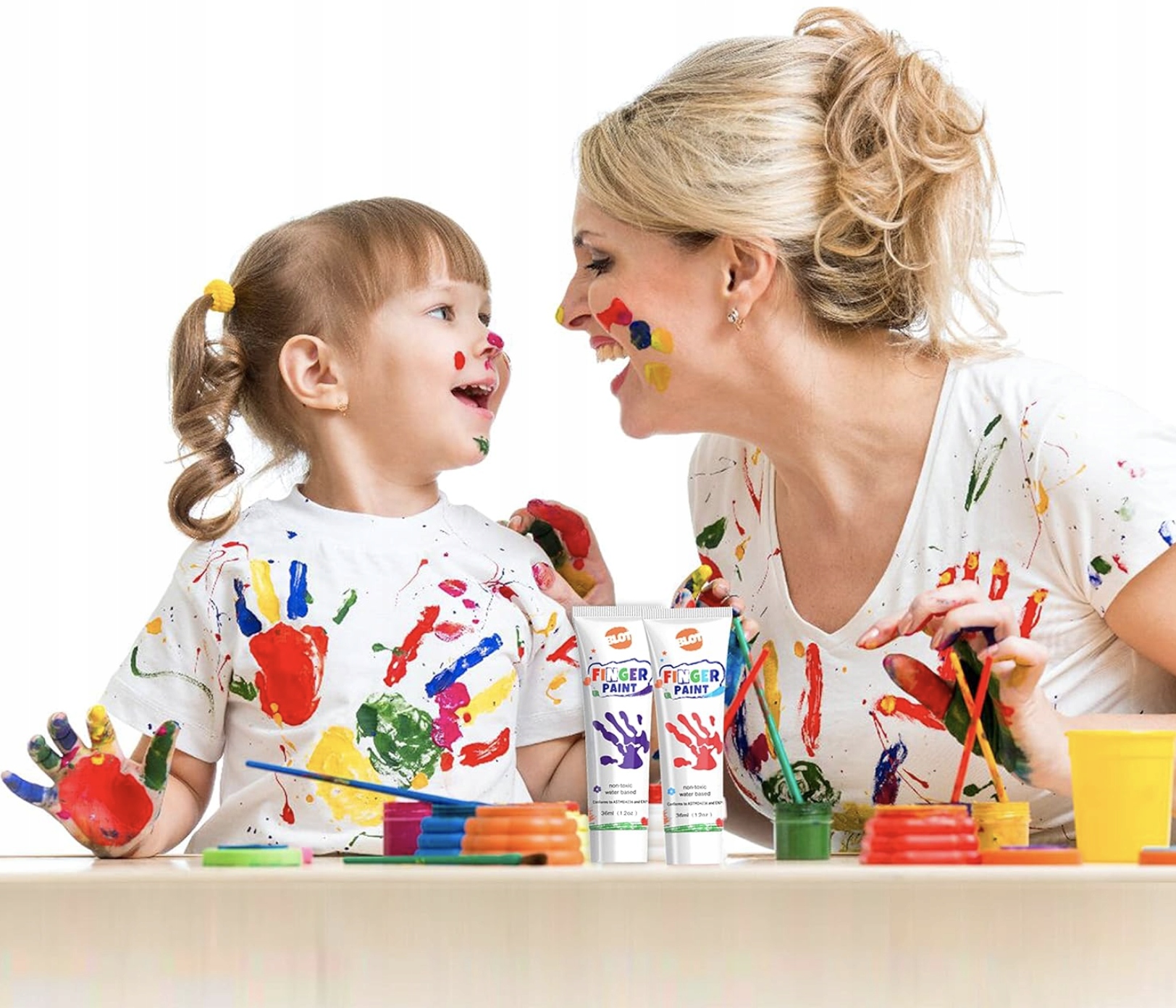 ➡️ Farby zostały stworzone z myślą o wygodzie rodziców i dzieci. Po zabawie wystarczy ciepła woda i mydło, aby zmyć resztki farby z rąk i ubrań. Dzięki temu malowanie staje się przyjemnością, a sprzątanie nie jest problemem.