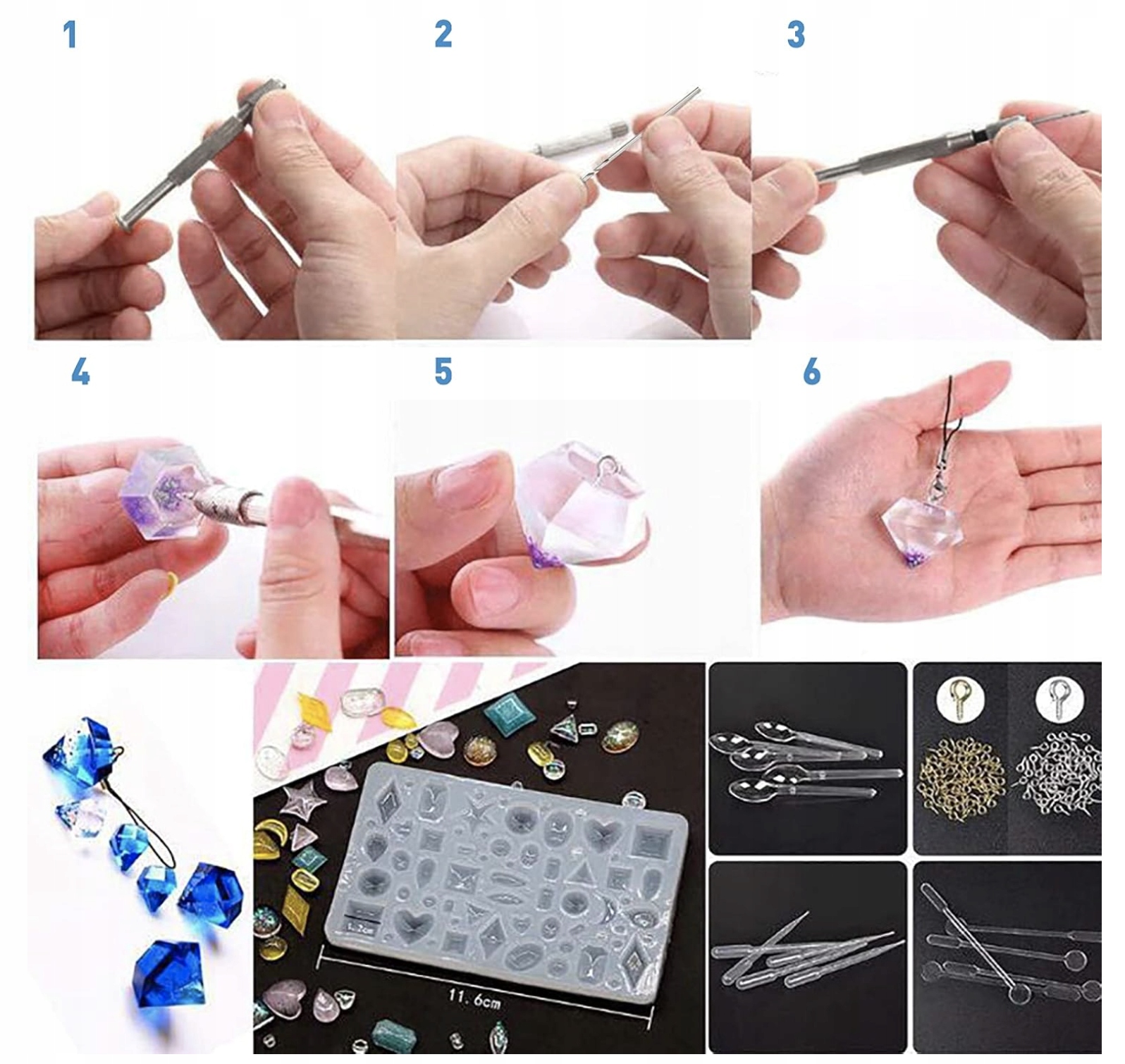 - Typ zestawu: Produkcja biżuterii z żywicy