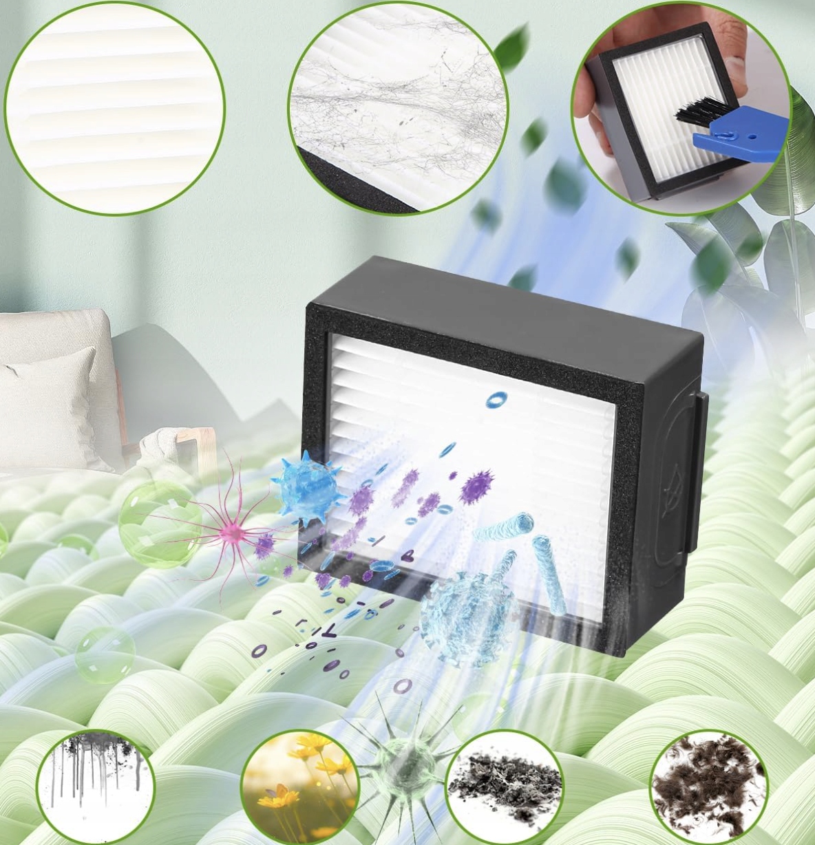 • Funkcja: efektywne zbieranie kurzu, włosów i zanieczyszczeń oraz filtracja powietrza