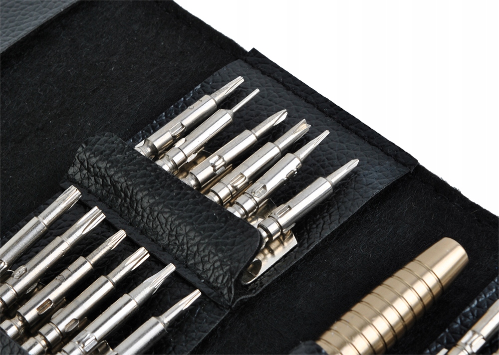 ➡️Zestaw specjalistycznych wkrętaków to 25 elementów znajdujących się w etui zamykanym na magnes. Każdy element posiada swoje własne miejsce, co pozwala na zachowanie porządku oraz sprawną organizację miejsca pracy, a tym samym jej szybkie i dokładne wykonanie. Komplet przeznaczony jest zarówno do napraw telefonów, smartfonów i tabletów jak również wszystkich innych urządzeń i sprzętów, które posiadają niestandardowe, drobne śruby.