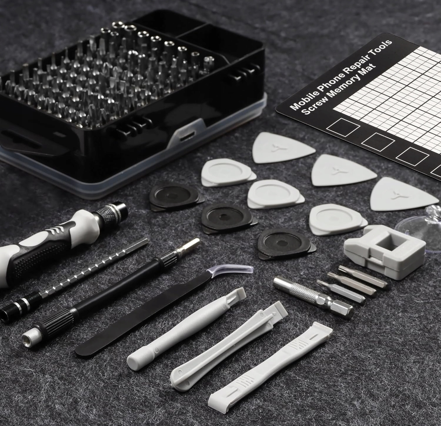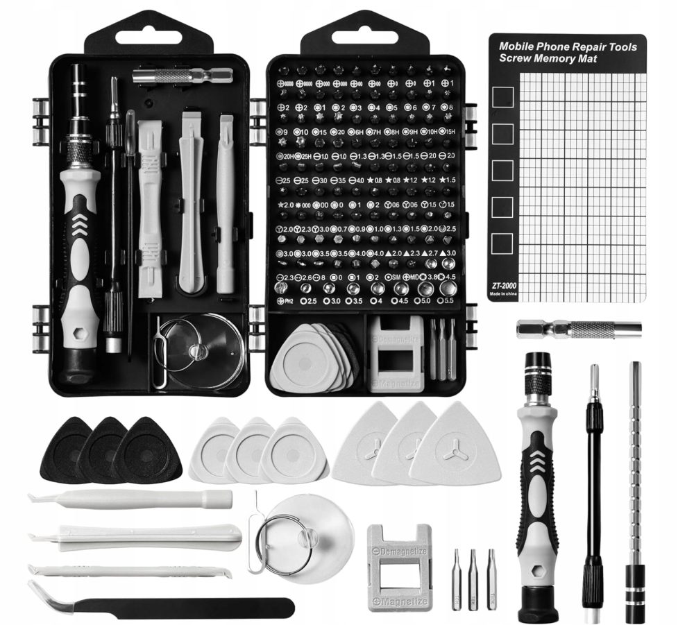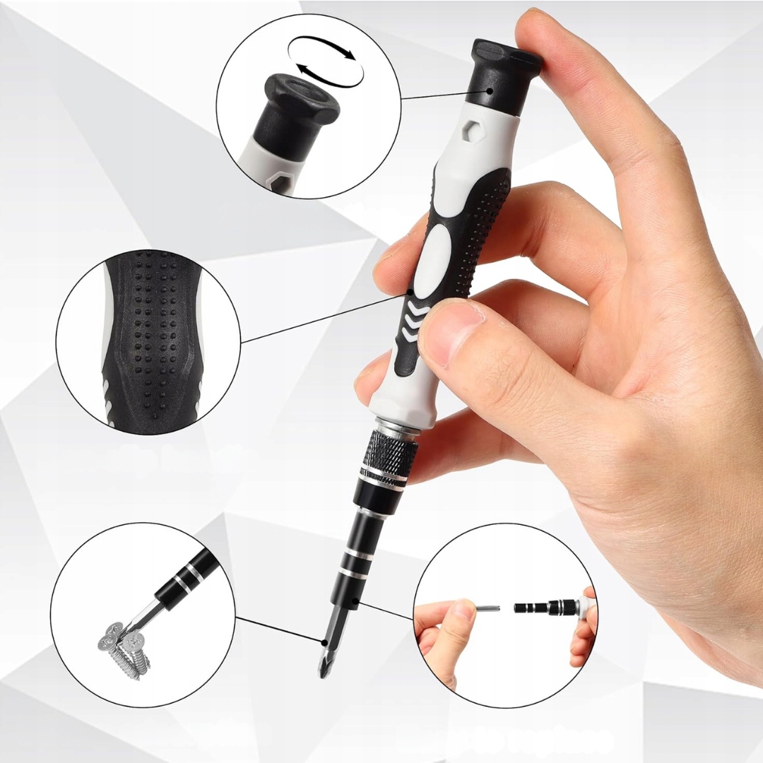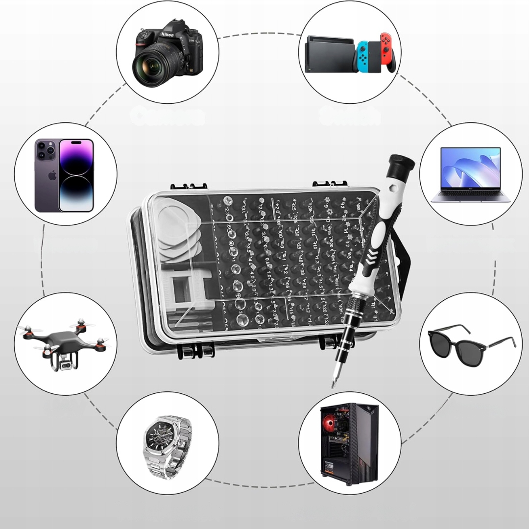 ➡️ Zestaw 122 w 1 obejmuje 101 wymiennych końcówek oraz 21 narzędzi do demontażu, które poradzą sobie z każdą codzienną naprawą elektroniki. Od smartfonów, tabletów, laptopów po konsole – nigdy więcej zgubionych śrubek i niepotrzebnego stresu podczas napraw.